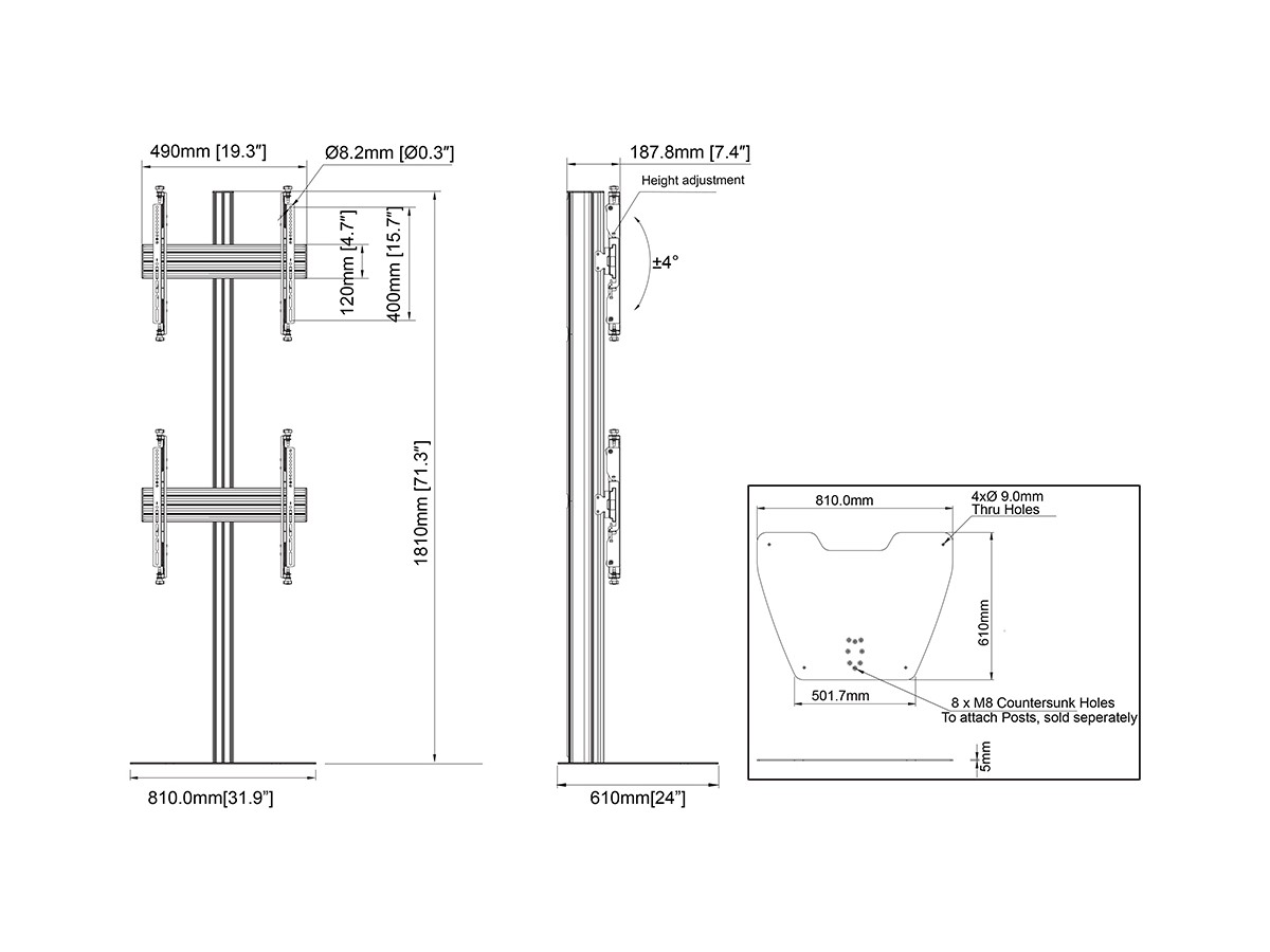 With its modular construction installers can tailor the M Floorstand Column Pro MBFSC2U 180 Micro Adjustable with the clients need in mind. Possibilities to change, update and reconfigure its design and if ideas change over time Pro Series can follow