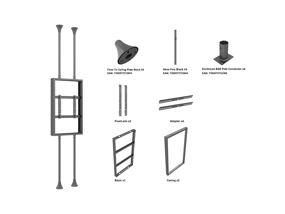 Product code:M Pro Series Enclosure Floor to Ceiling Mount B2B 55" Medium Black – Floor to ceiling mount with casing for display, steel, 3m length, 2 screens, double side, fixed arms, VESA max 600x400 - screen size: 55" - black
