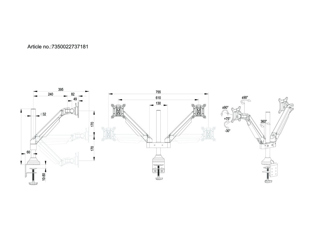The Dual triple jointed gas suspended monitorarm was designed by Multibrackets to optimize your productivity and help reducing strain on neck, back and eyes.