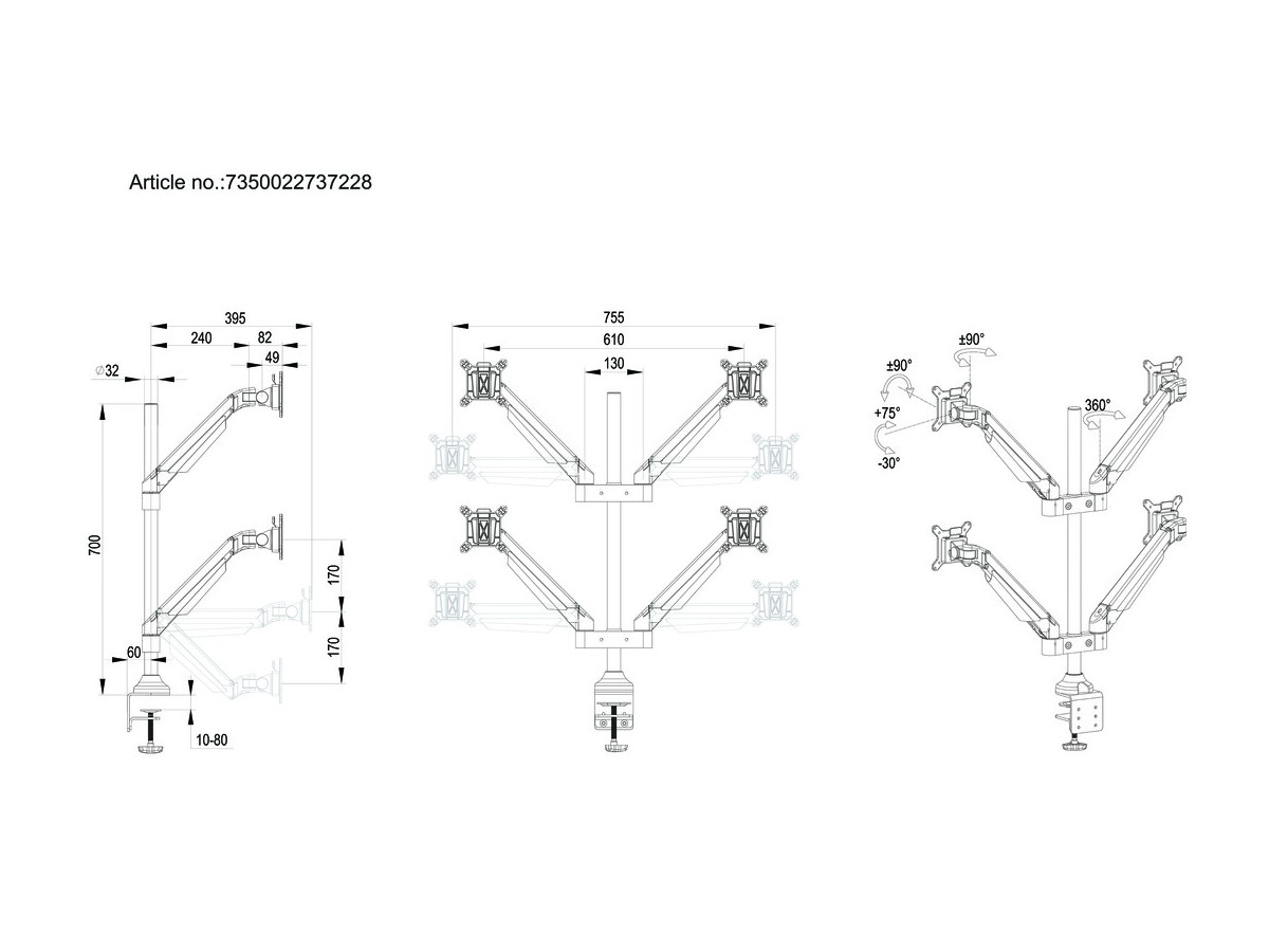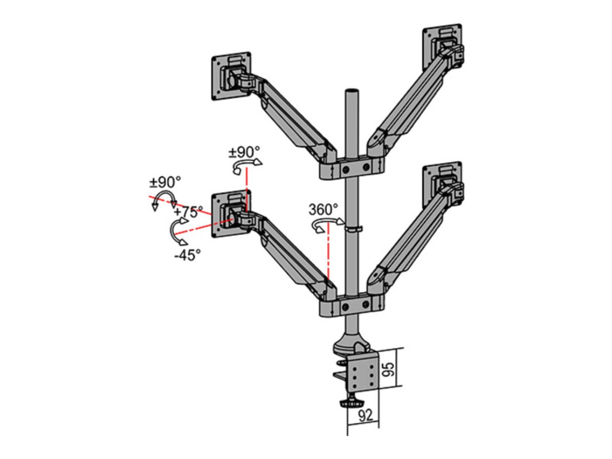 Product code:Multibrackets M VESA Gas Lift Arm Quad - Mounting kit ( desk clamp mount, 4 articulating arms ) for 4 LCD displays - aluminum - silver