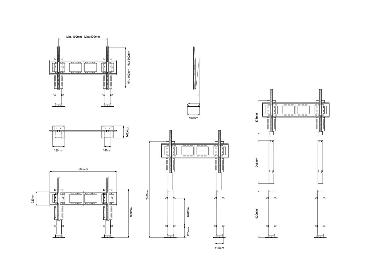 | Mounting holes (VESA): | 200x200 300x300 400x400 500x400 600x400 700x400 800x400 900x400 800x600 900x600 |