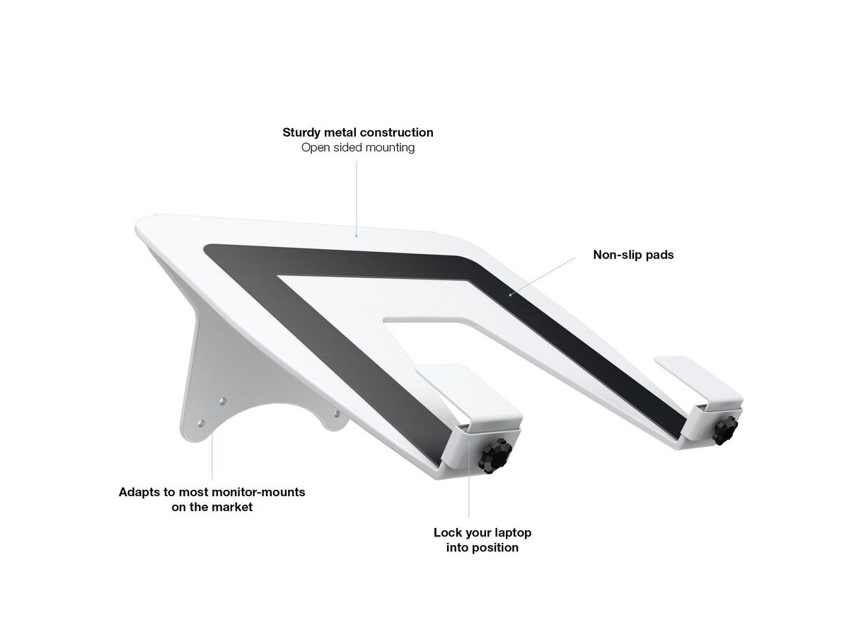 This unique holder consists of a VESA based centerpiece and its connected holding arms that gently grab your laptop. The M Laptop Holder Gas Lift Arm is VESA compatible, so it can be mounted onto almost any VESA specified wallmount, arm or desktopmount. However this laptop holder is designed to work with M VESA Gas Lift Arm.