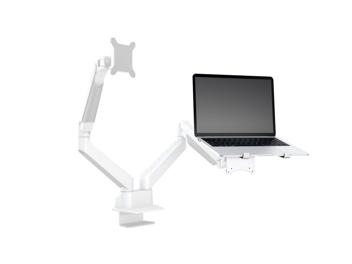 This unique holder consists of a VESA based centerpiece and its connected holding arms that gently grab your laptop. The M Laptop Holder Gas Lift Arm is VESA compatible, so it can be mounted onto almost any VESA specified wallmount, arm or desktopmount. However this laptop holder is designed to work with M VESA Gas Lift Arm.