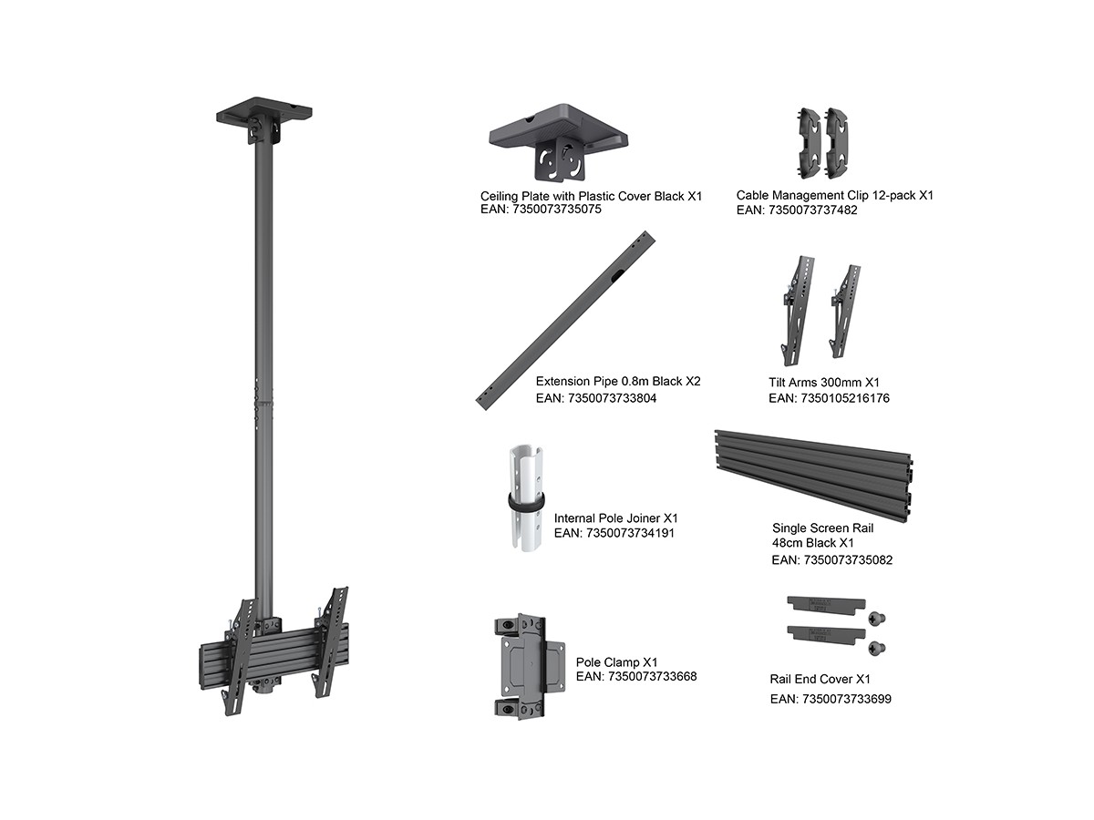 Product code:M Ceiling Mount Pro MBC1U, VESA 300 - Ceiling mount for LCD display, steel, 1.5m length, 1 screen, single side, tilt arms, VESA 300 - screen size: 32"-50" - black
