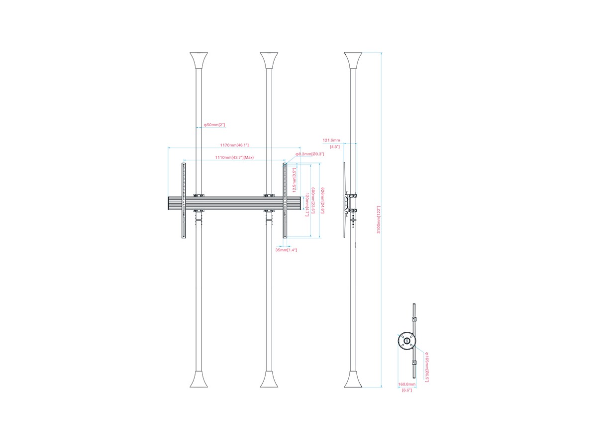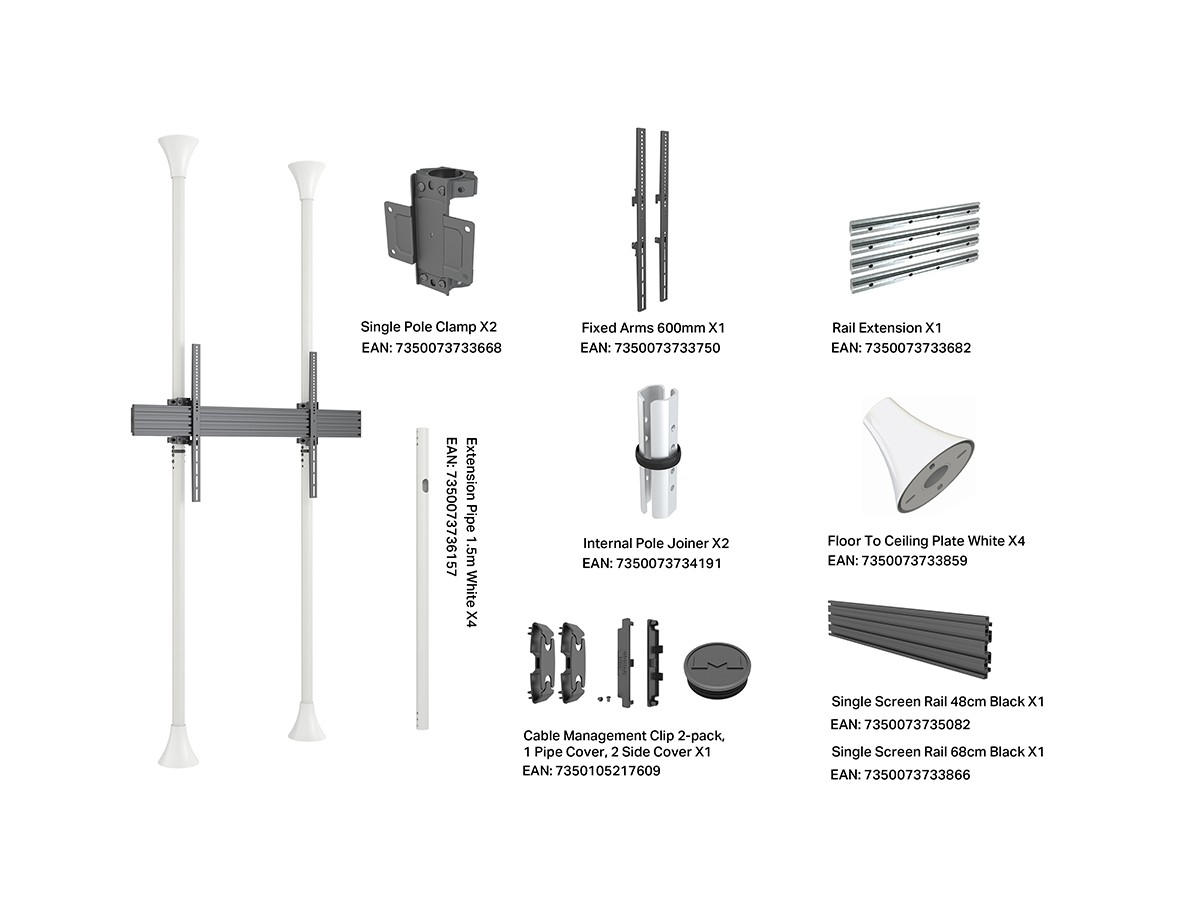 Product code:M Floor to Ceiling Mount Pro MBFC1UX1 1000 White - Ceiling mount for LCD display, steel, 1 screen, single side, fixed arms, VESA Max 1000x600 - screen size: 55”-85” - white