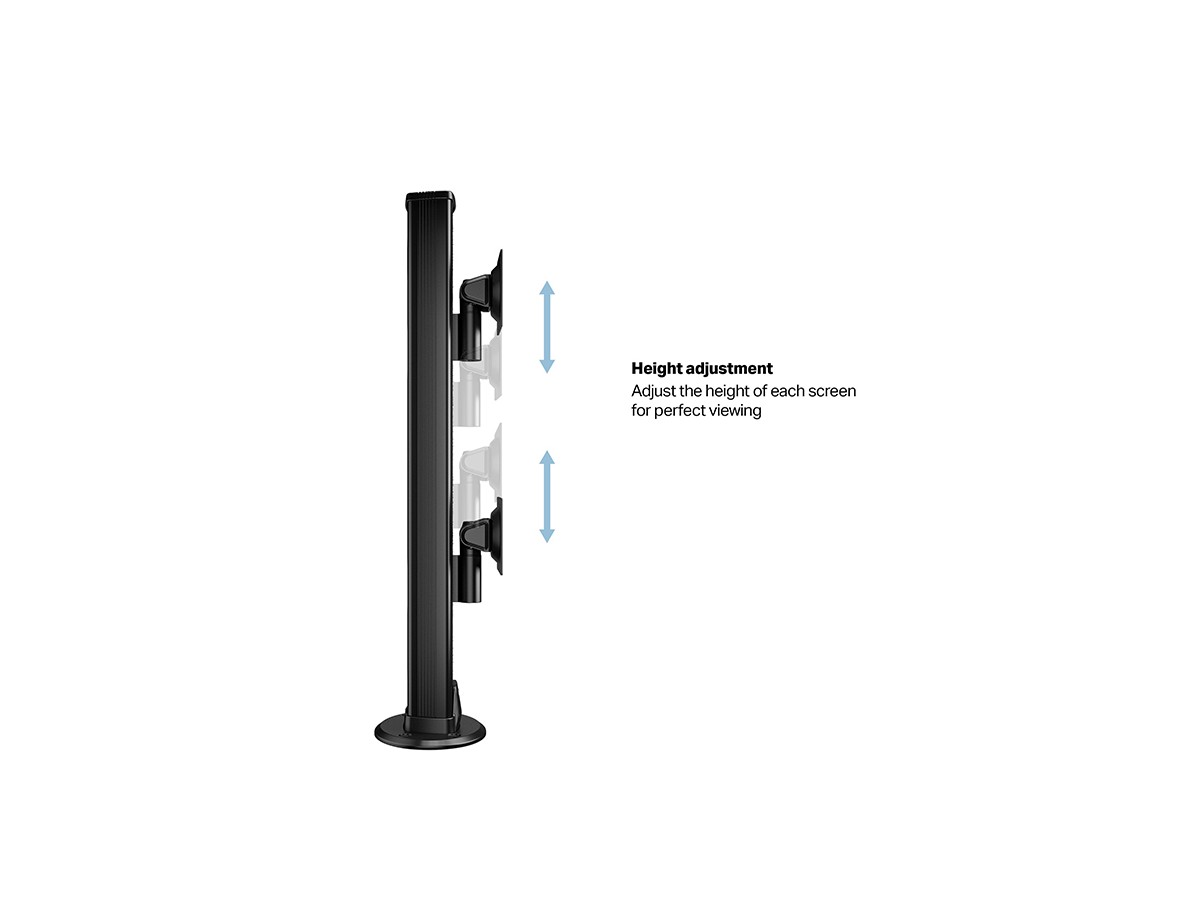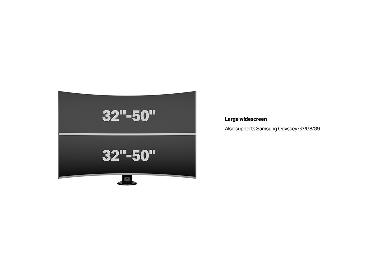 M VESA Grommet Base HD Dual Vertical Widescreen 32" - 50" works with almost all LCD screens on the market supporting VESA standards of 75/100mm holding screens weight up to 24 kg each, height of pillar is 800 mm allowing two screens.M VESA Grommet Base HD Dual Vertical Widescreen 32" - 50" also supports Samsung Odyssey G7/G8/G9