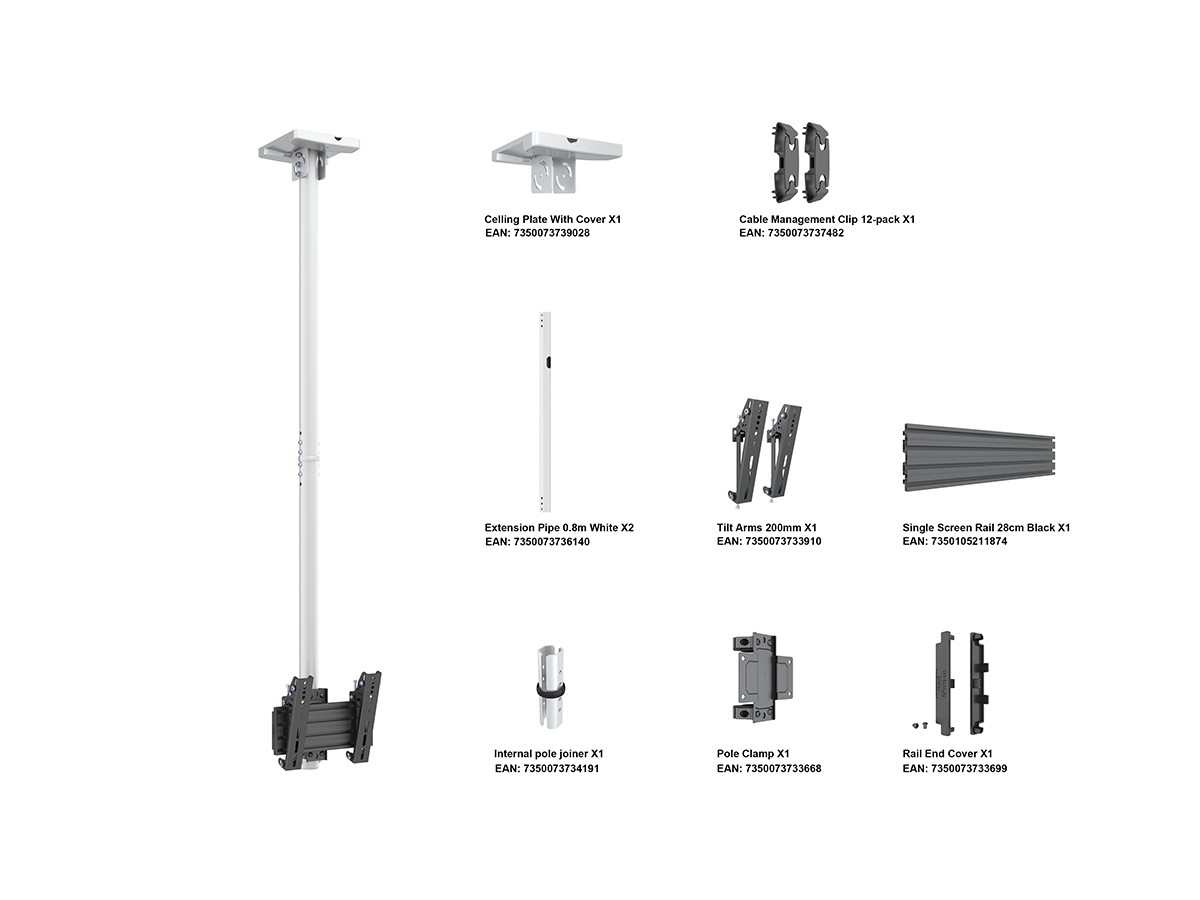 Product code:M Ceiling Mount Pro MBC1U White VESA 200 - Ceiling mount for LCD display, steel, 1.5m length, 1 screen, single side, tilt arms, VESA 200 - screen size: 24"-42" - white