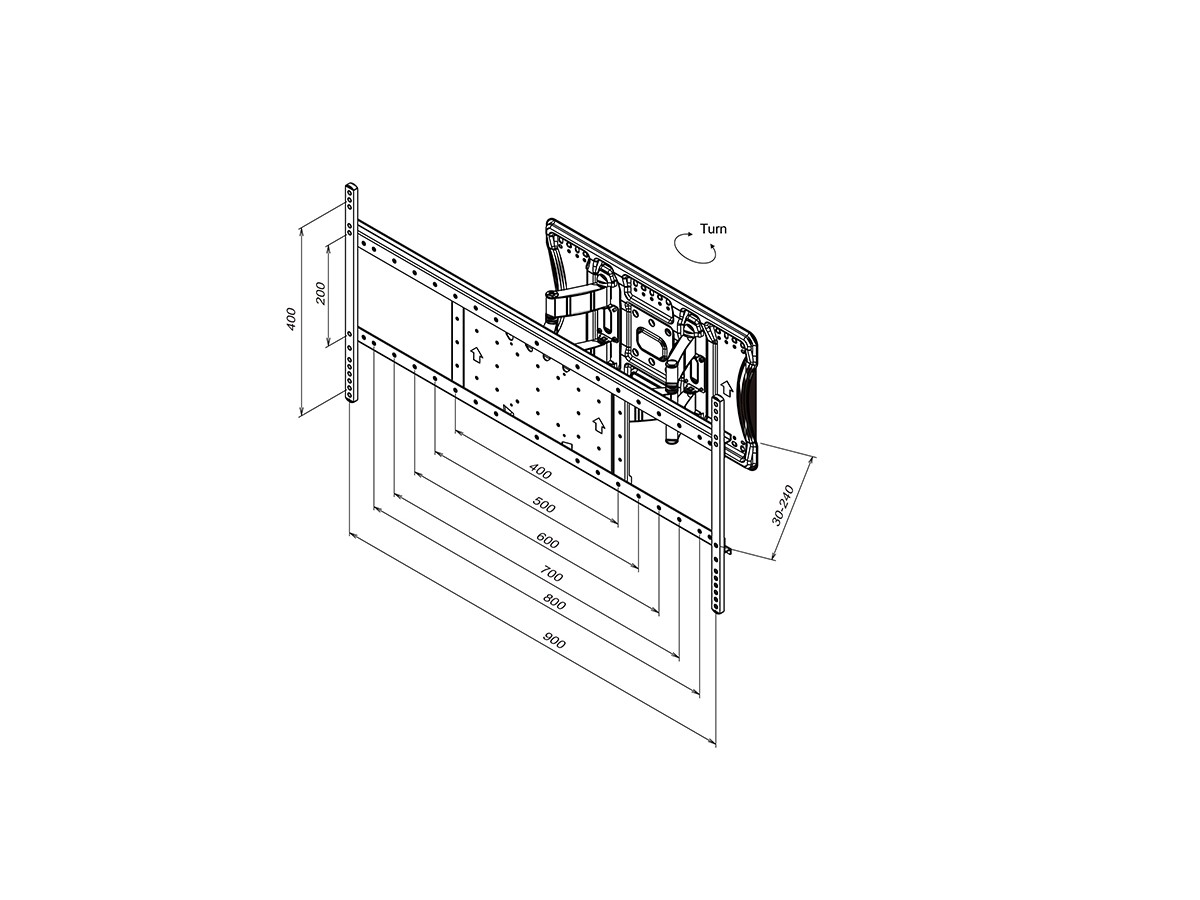 As large-size displays grow in popularity, this mount is ideal for accommodating the trend. Its uniquely designed low-profile frame fits most 75" to 100" flat panels weighing up to 125 kg, making it perfect for installations where seamless integration is key. Part of the Super Slim Series, this model offers a minimalist design while maintaining full functionality with tilt, turn, and cantilever features.