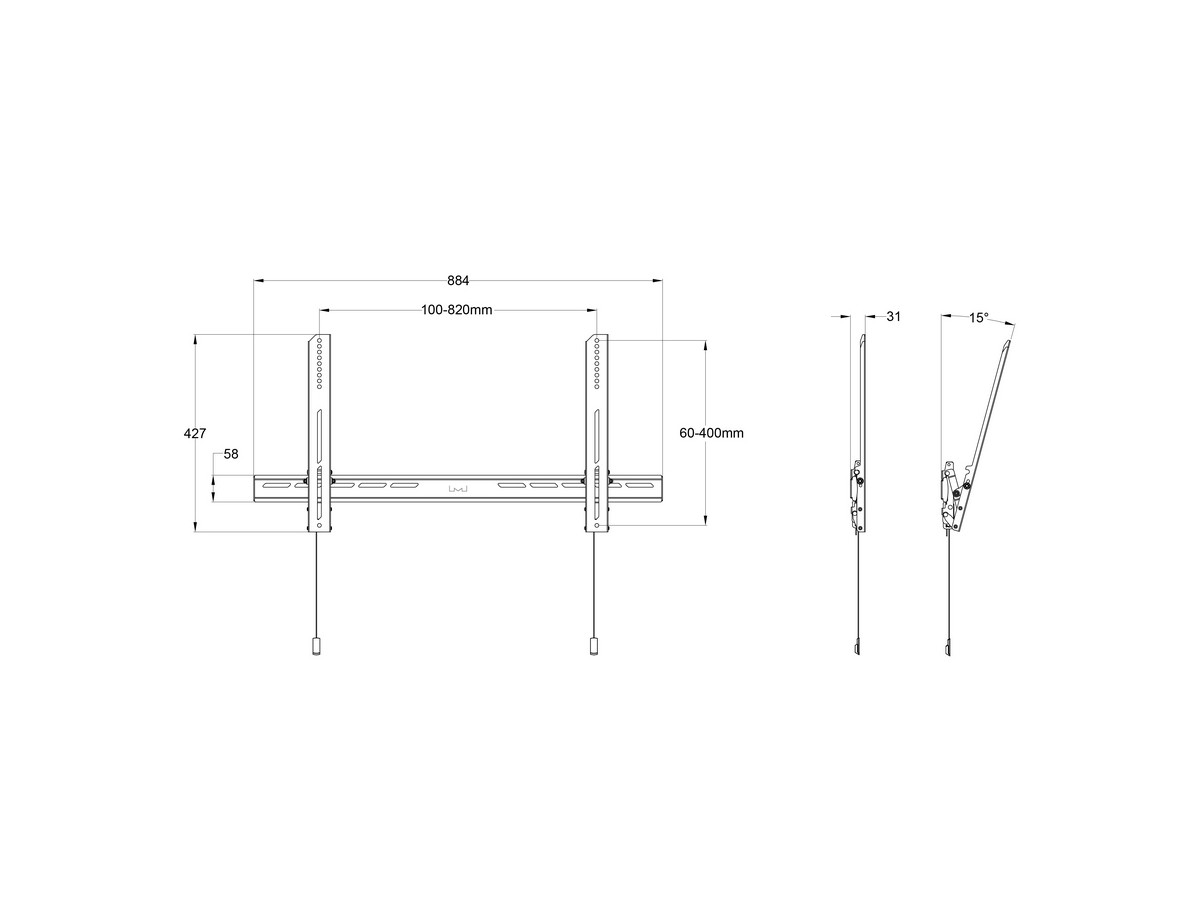 | Universal & VESA standard: | 100x100, 100x200, 200x100 200x200, 200x300, 300x200 300x300 400x200, 400x300, 400x400, 500x300 600x400 800x400mm |