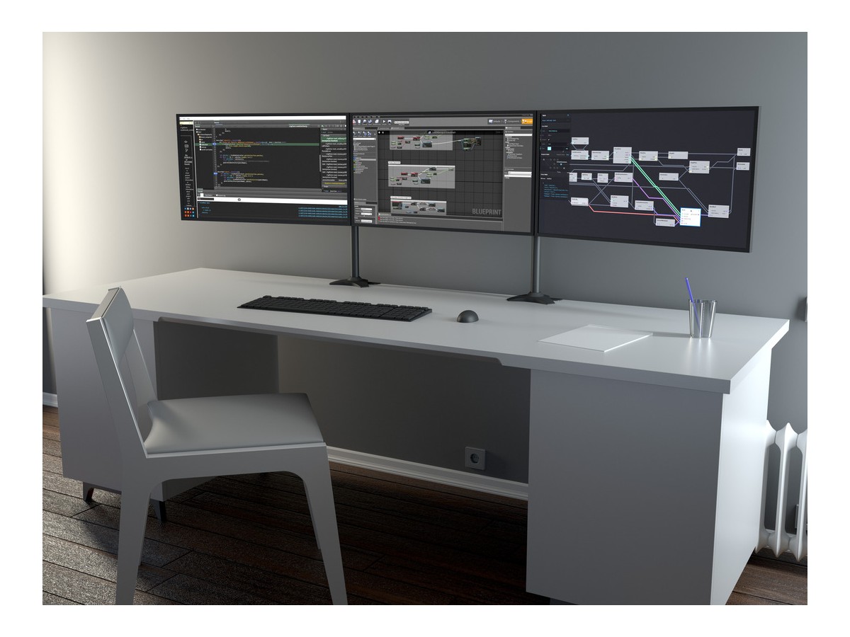 - Possible to mount the triple stand to the desk in various ways to find an optimal solution