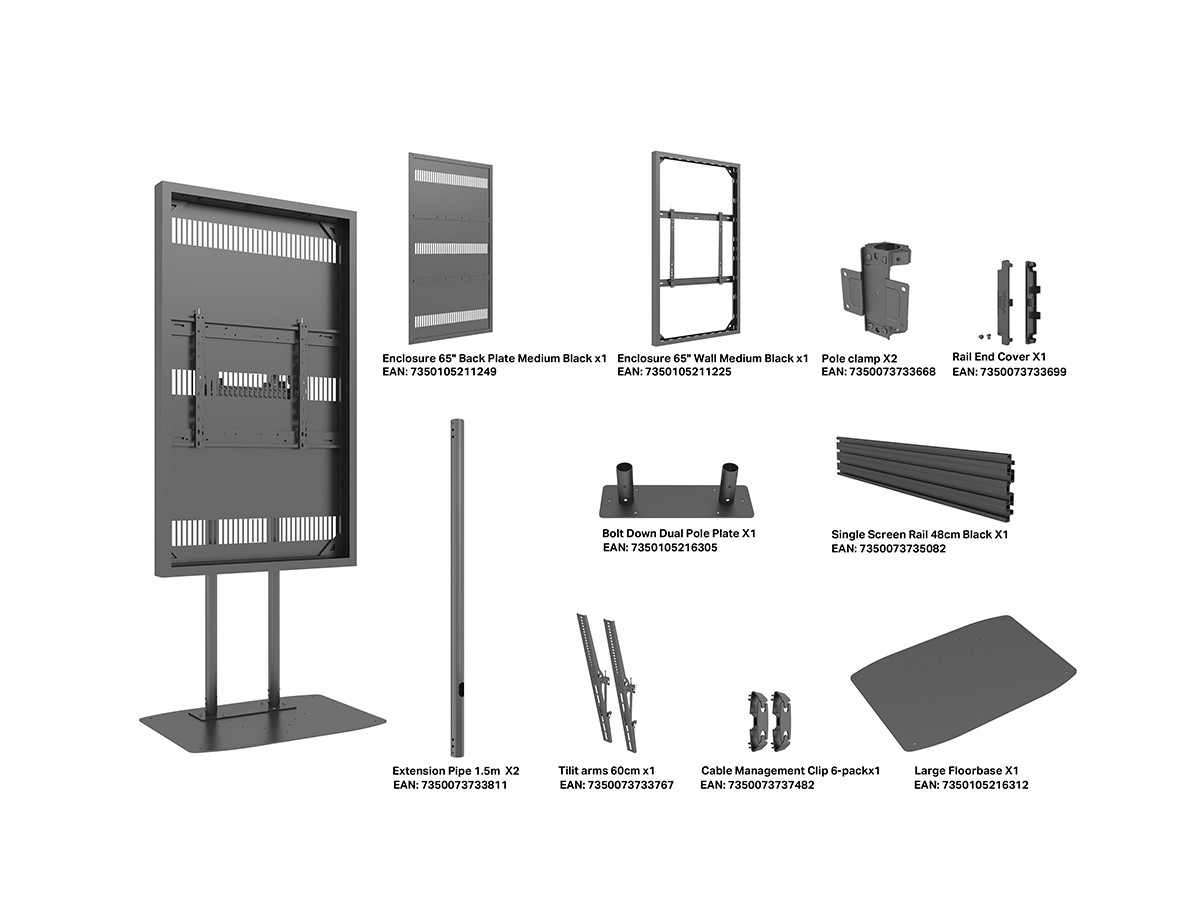 Multibrackets 7350073732685 M Pro Series - Dual Pole Enclosure 65'' Floorbase