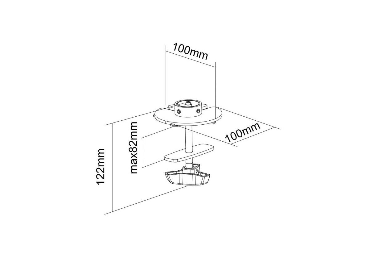 Rigid construction can hold up to 4 monitors weighing at 10 kgs each. M Deskmount Single/Dual/Triple/Quad Stand Grommet Base manages table widths of up to 82mm.