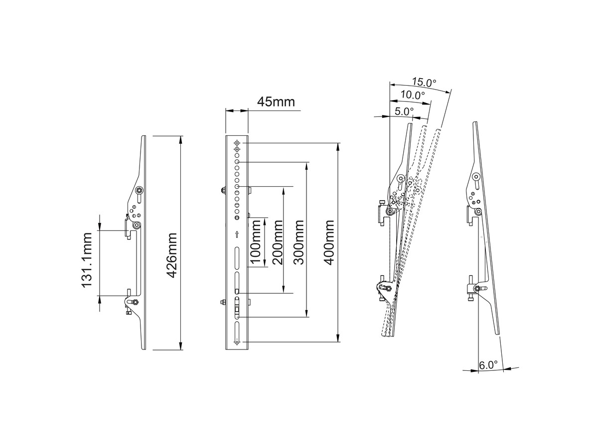 Product code:M Tilt Arms 400mm - Tilt Arms, Part for Pro Series, steel, length: 400mm 30kg max weight capacity, +0°/-15° tilt angle, 2 pcs - black