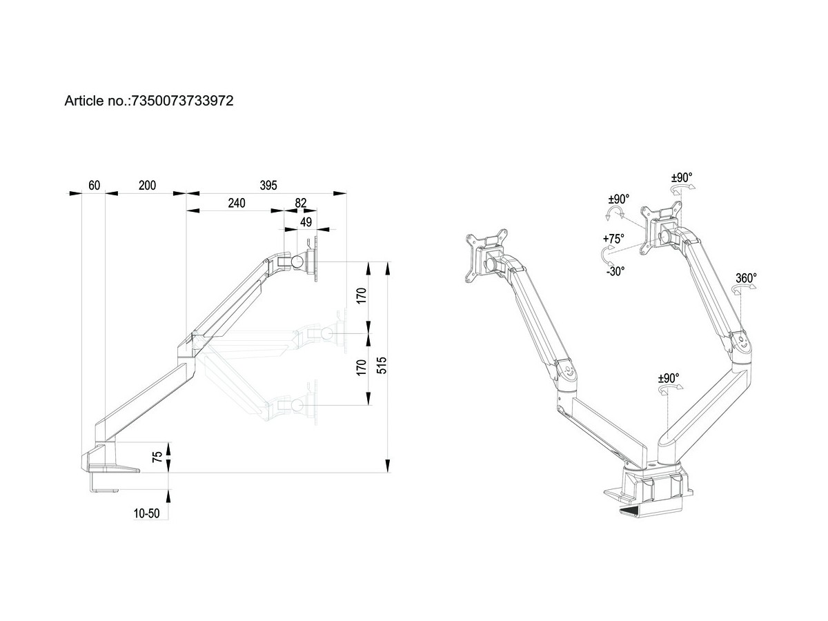 | Installation: | Desk clamp, adjustable 10-50 mm |
