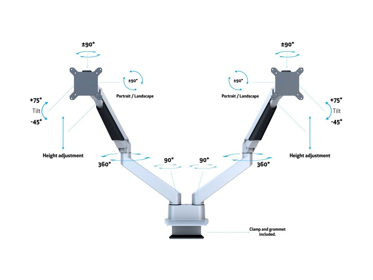 There are few things that are so important in the workplace as your working position during an 8-hour shift. So save back, neck and eyes and let’s make it easy to use dual monitors in the office.