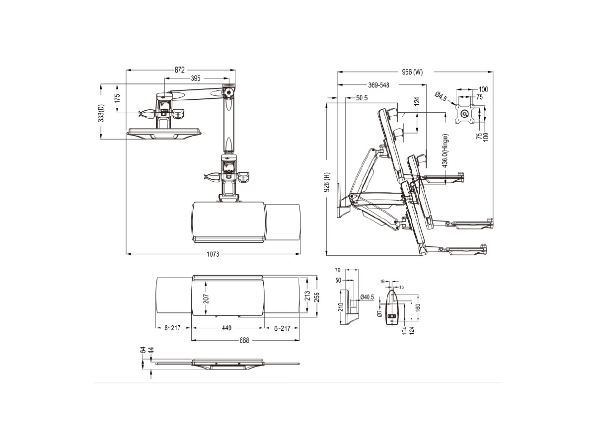 - The 333mm arm adjusts to support an ergonomically correct working position
