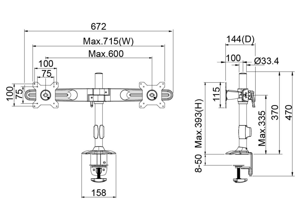 | Adjustable height from table top to VESA plate center: | 100 - 400 mm |