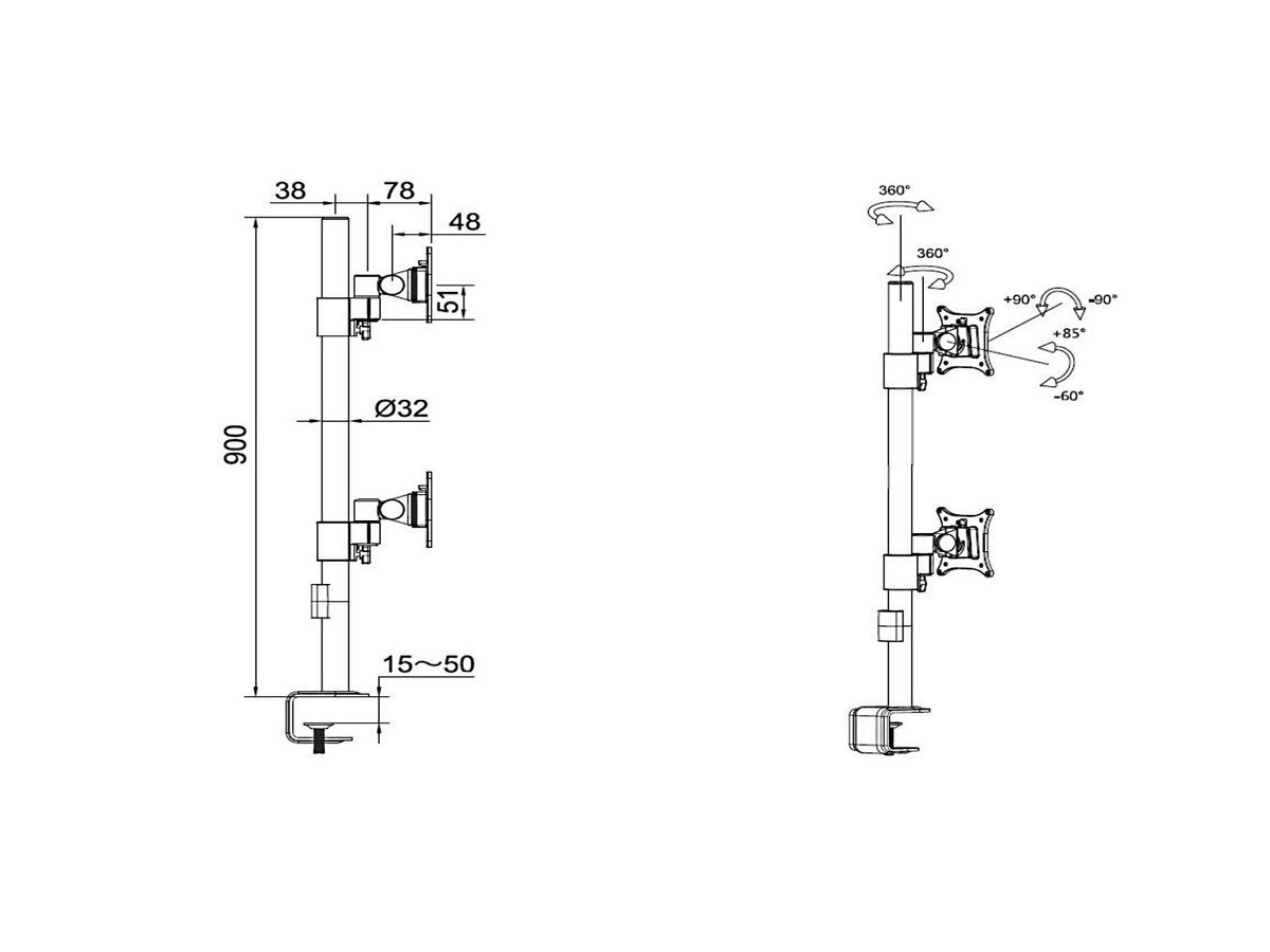 | Installation: | Desk clamp, adjustable 10 - 50mm |