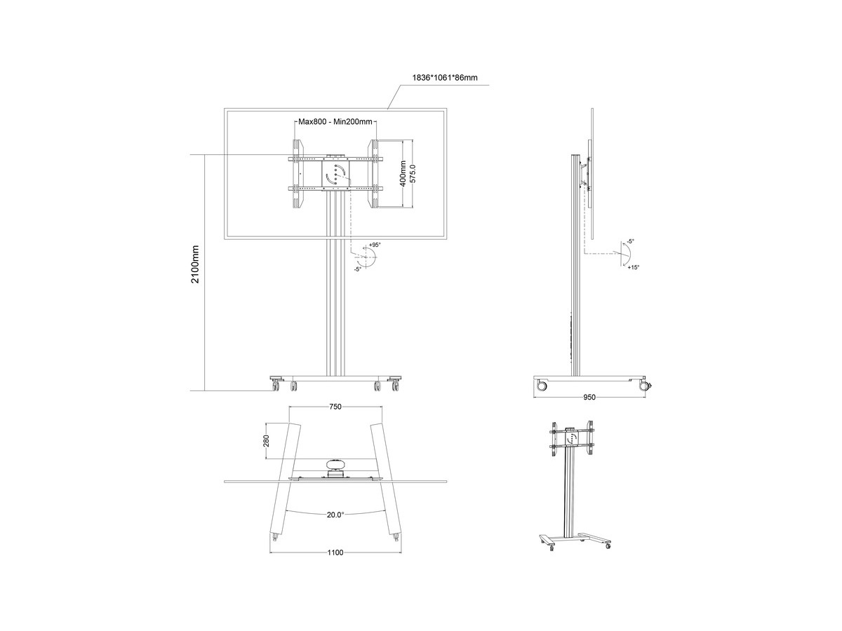 Product code:Multibrackets M Public Display Stand 210 HD Single - Stand for LCD display - aluminum - silver - screen size: 55" - 80" - mounting interface: up to 800 x 500 mm - floor-standing