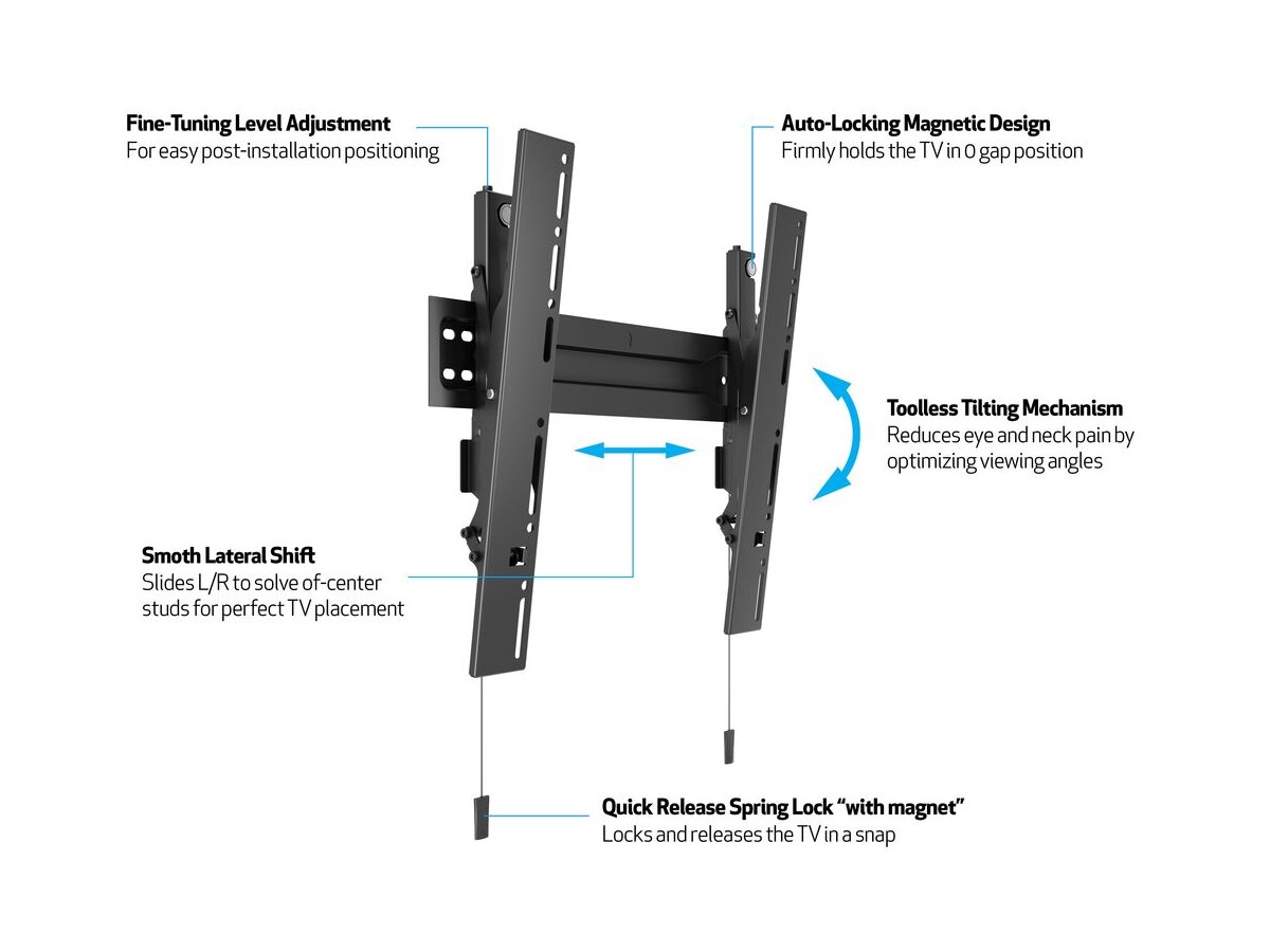 - Tool less tilt allows for effortless positioning