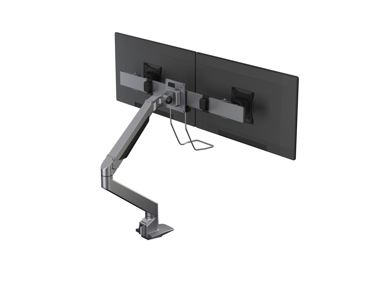 Product code:M VESA Gas Lift Arm Single Silver w. Duo Crossbar - Mounting kit ( articulating arm, desk clamp mount ) for 2 x LCD display - aluminum - silver - screen size: 15" - 28"