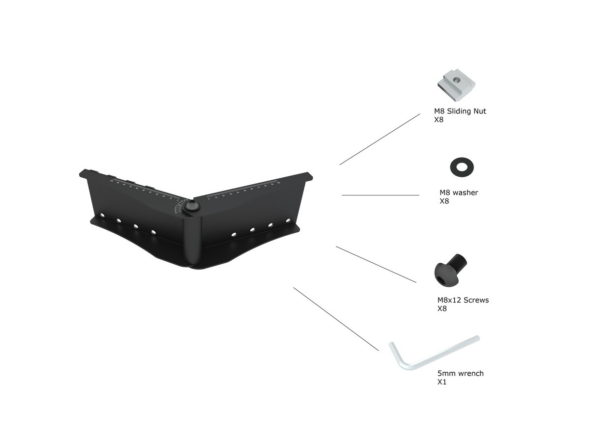 With its modular construction Pro Series parts have vast possibilities to change, update and reconfigure a Pro Series installation. Combine the parts with a Pro Series installation and create a new configuration. Maximum angle reached with the product is 45 degrees.