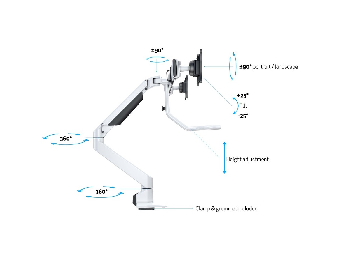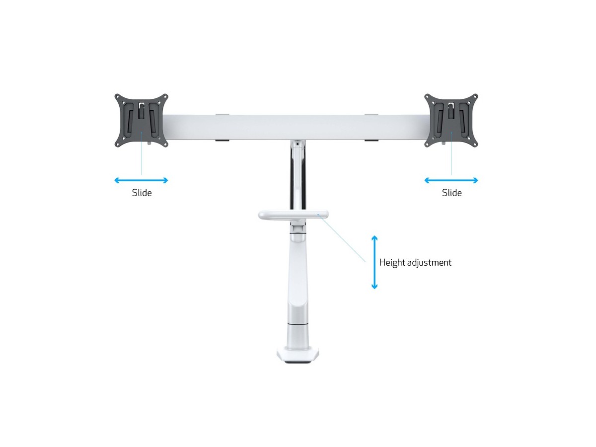 Product code:M VESA Gas Lift Arm w. Duo Crossbar 2 White - Mounting kit ( articulating arm, desk clamp mount ) for 2 x LCD display - aluminum - screen size: 15" - 28" - white