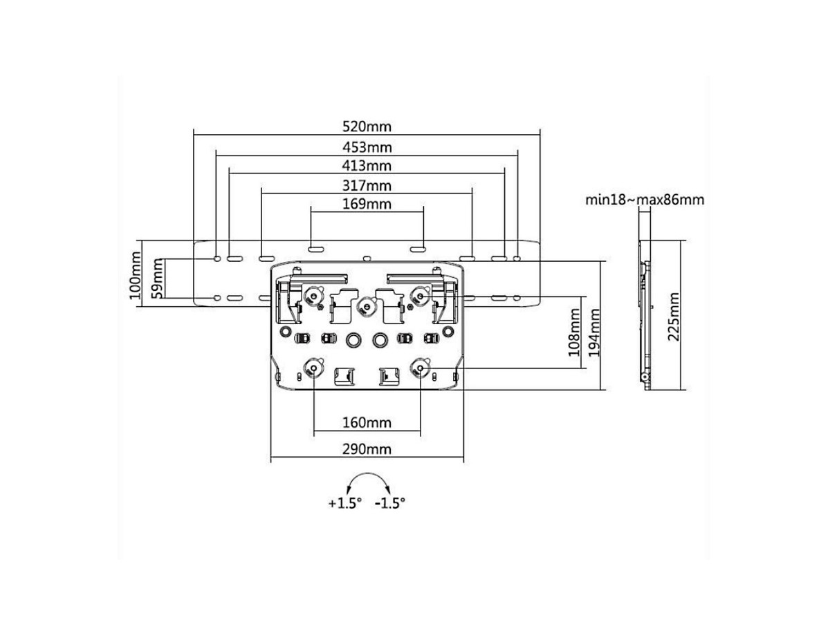 | Size in mm: | 520 x 86 x 18-86 mm | |||||