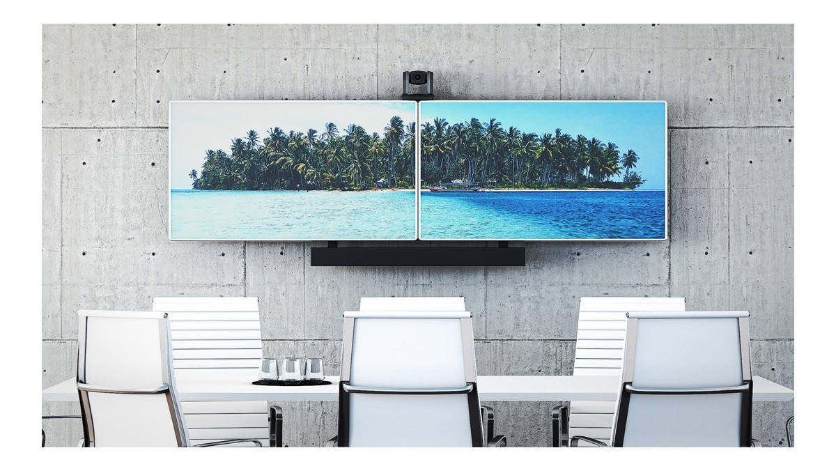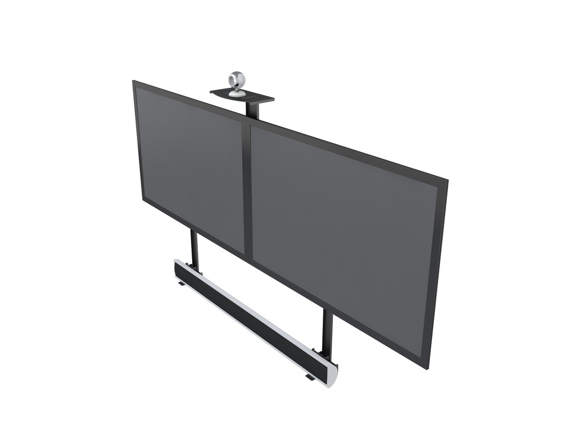 Create a meetingroom solution. Poly, Logitech and Yealink are a few of the popular meetingroom brands for cameras and or videobars that can be used with ths camerashelf (always check weight and measurements). Attach the camera solution over or under the display. Using Pro Series the choice is yours.
