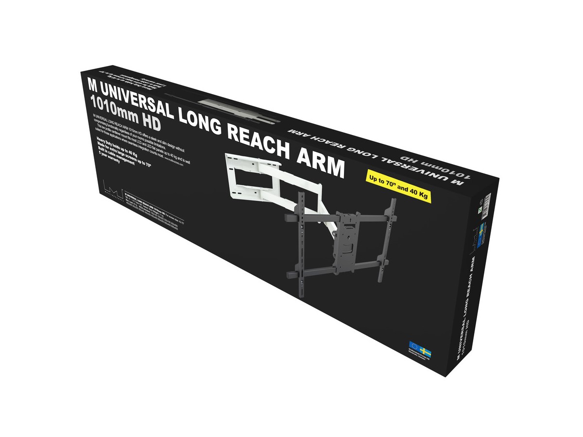 Product code:M Universal Long Reach Arm HD 1010mm Single White - Wall mount for LCD / LED panel - screen size: 42" - 75" - VESA: 100x100 - 800x400mm - max load: 40kg - white