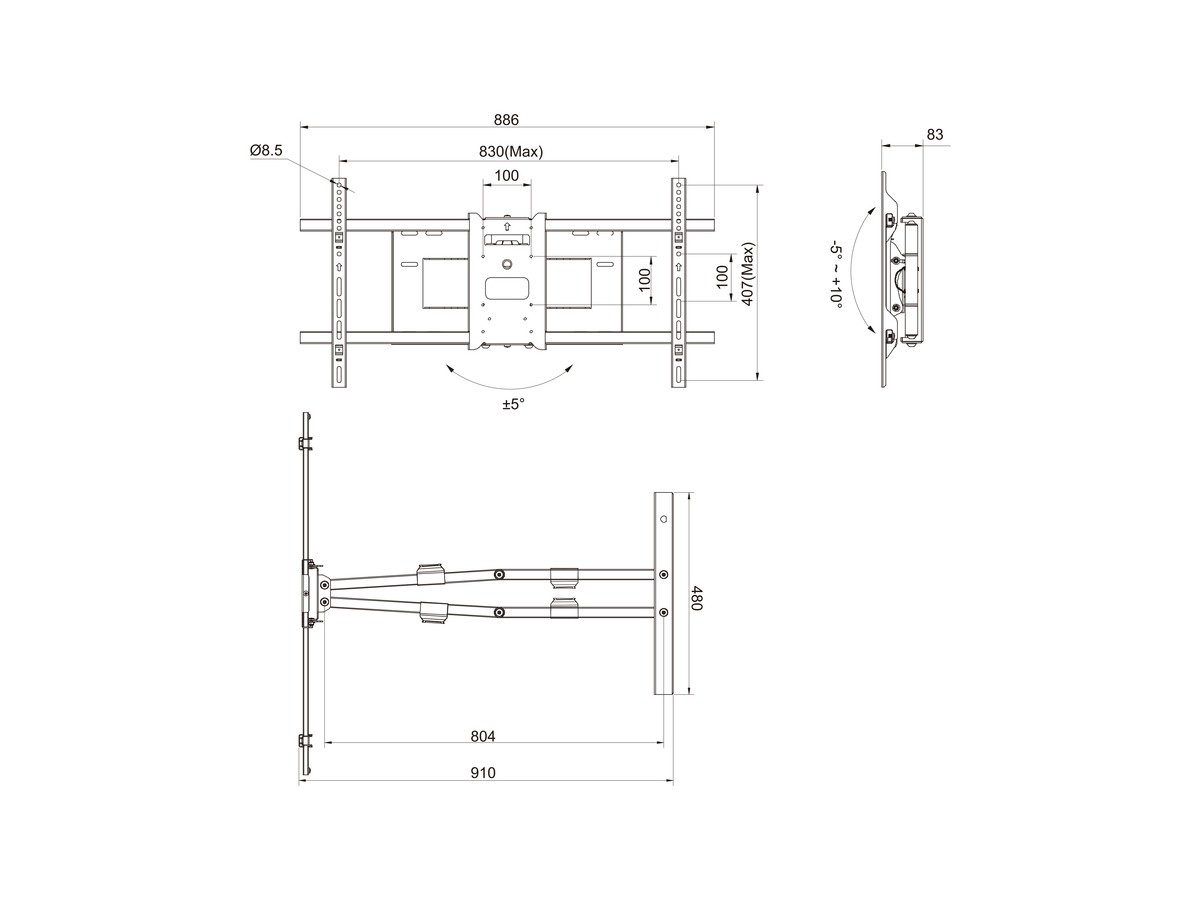 - Universal design supports VESA 100X100,100X200,200X100,200X200,200X300,200X400,300X200,300X300,400X200,400X300,400X400,