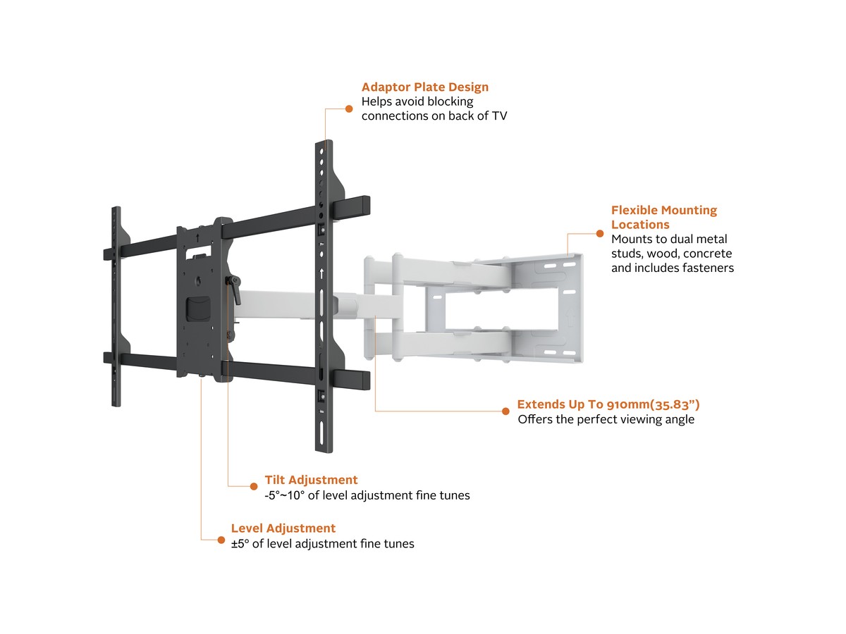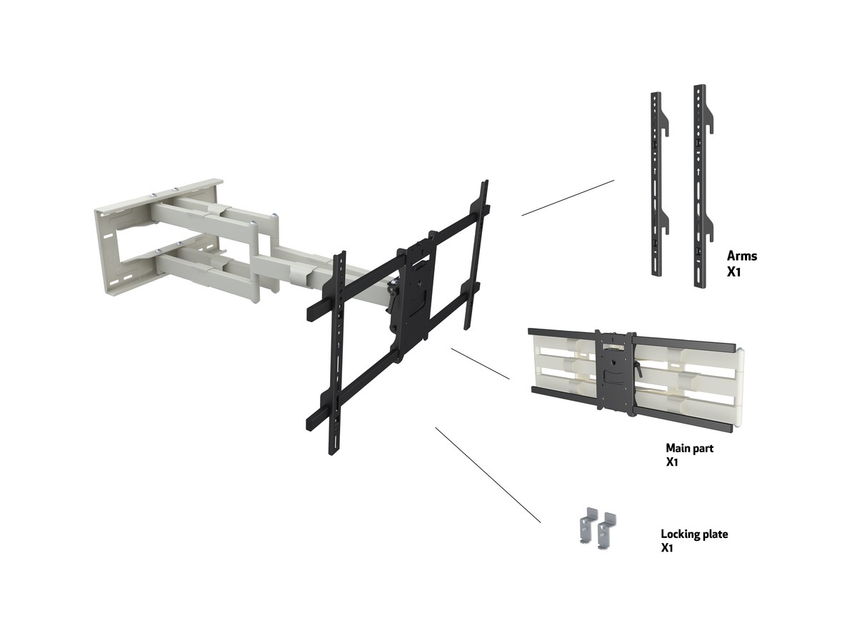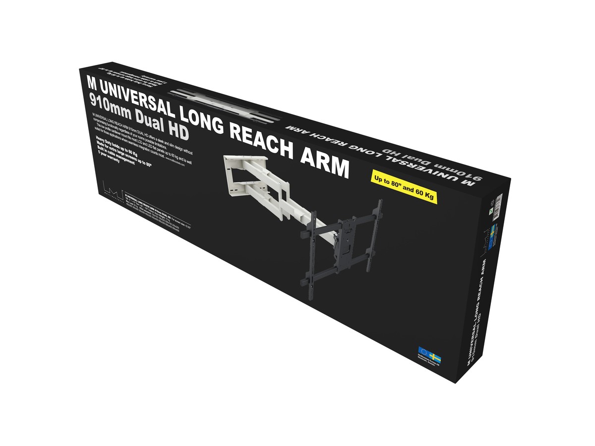 Product code:M Universal Long Reach Arm HD 910mm Dual White - Wall mount for LCD / LED panel - screen size: 50" - 80" - VESA: 100x100 - 800x400mm - max load: 60kg - white