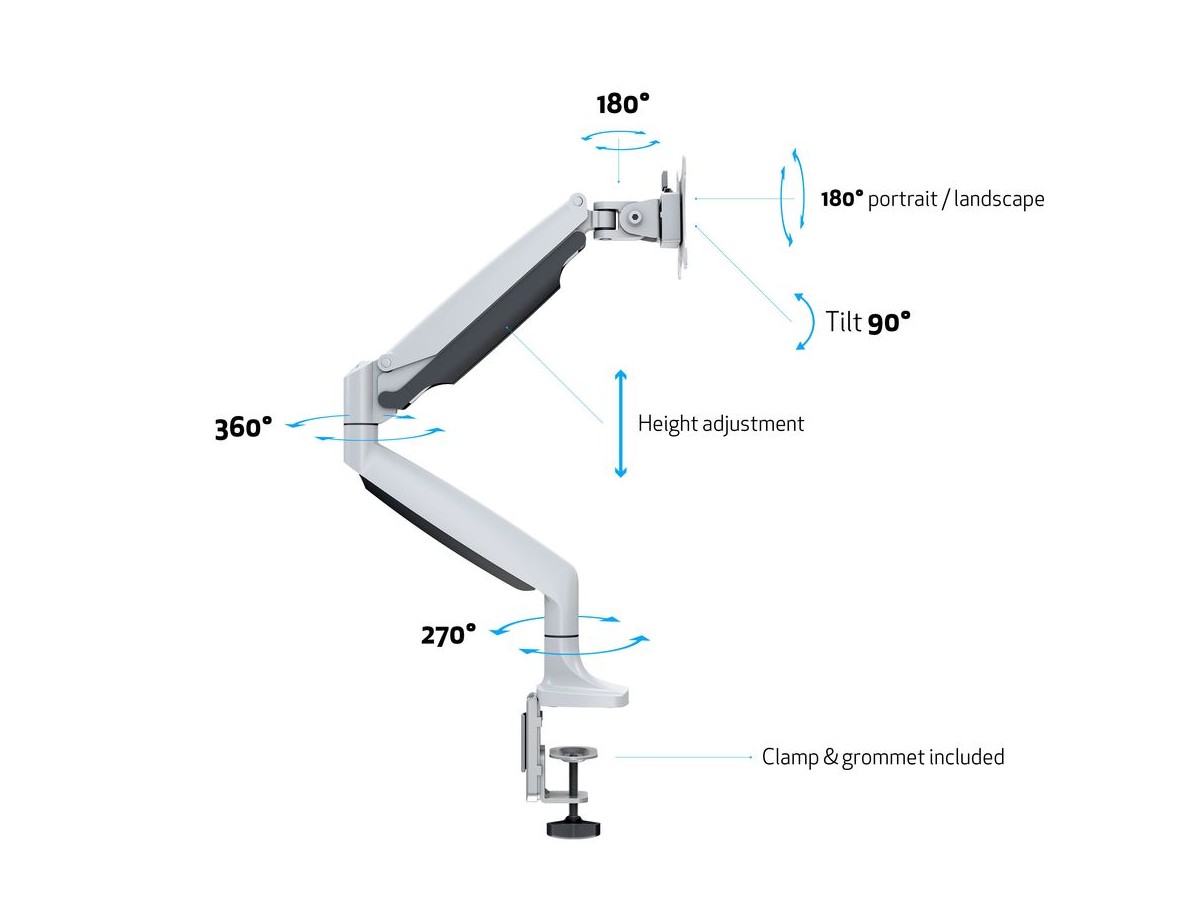 - Gas spring hovering system lets you gracefully adjust your monitors height and position