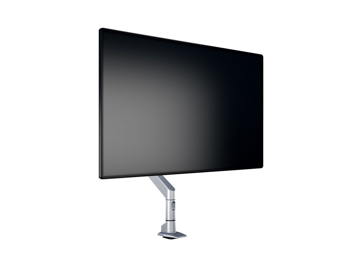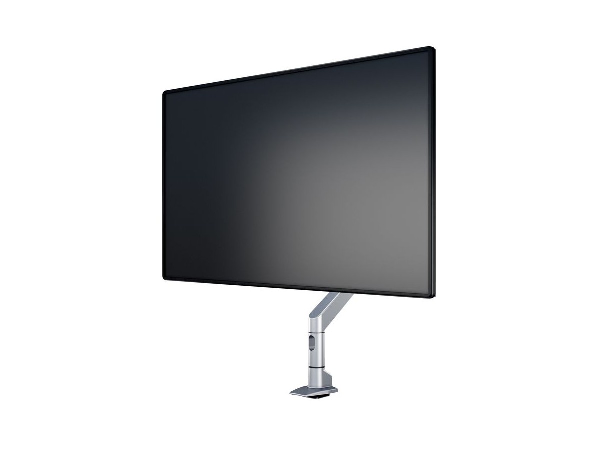 The M VESA Gas Lift XL HD Single Silver is made out of a durable aluminum construction and uses a gas driven suspension technique. This makes the screen "float" and it can then be moved with near zero effort. Sleek and streamlined, the M VESA Gas Lift XL Single Silver HD frees up space and allows positioning of your display for greater productivity. With a maxload of up to 18kg even very big monitors can be used. The height clearance is 615 mm above the desk. Rotation function is not used for widescreen or ultrawide screen monitors. The unique counterbalance gas technology provides smooth adjustment in any direction. Easy move the screen from landscape to portrait position or move the screen close to the desk, high up, matching almost any wanted working position imaginable.
