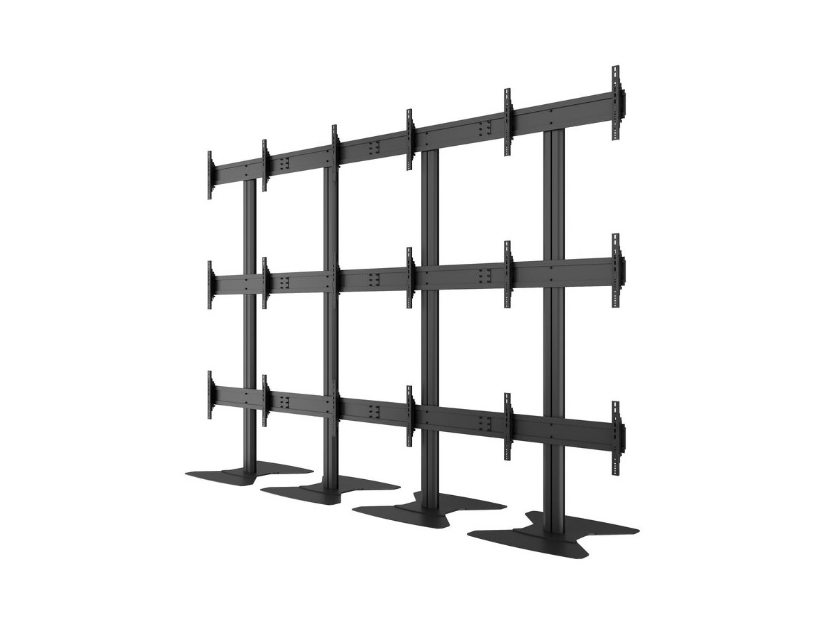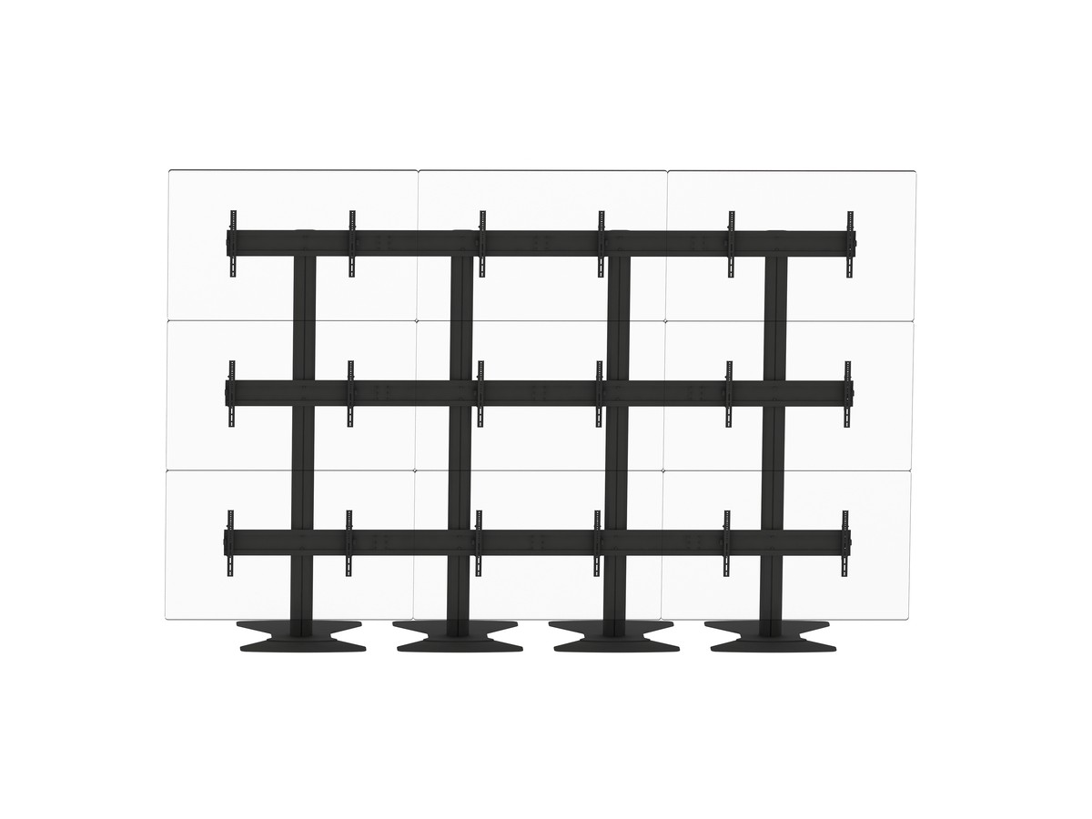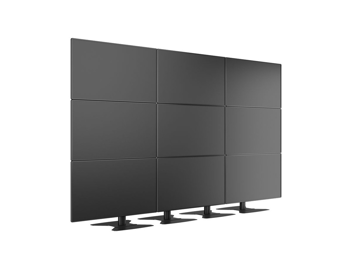 M Public Video Wall Stand 9-Screens 65-75" Black (3x3) screen array configuration is: 3 screens wide x 3 screens high.