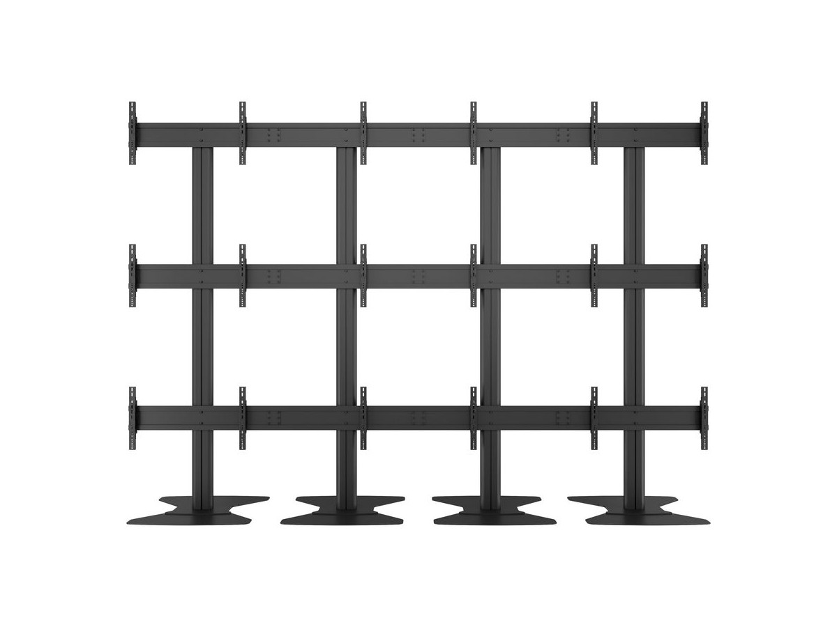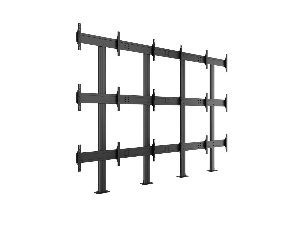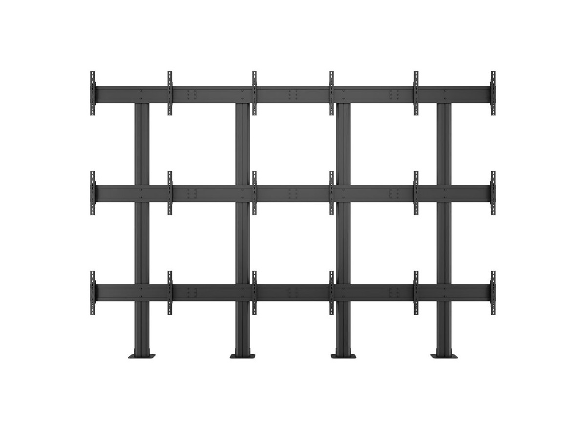 M Public Video Wall Stand 9-Screens 65-75" Black (3x3) screen array configuration is: 3 screens wide x 3 screens high.