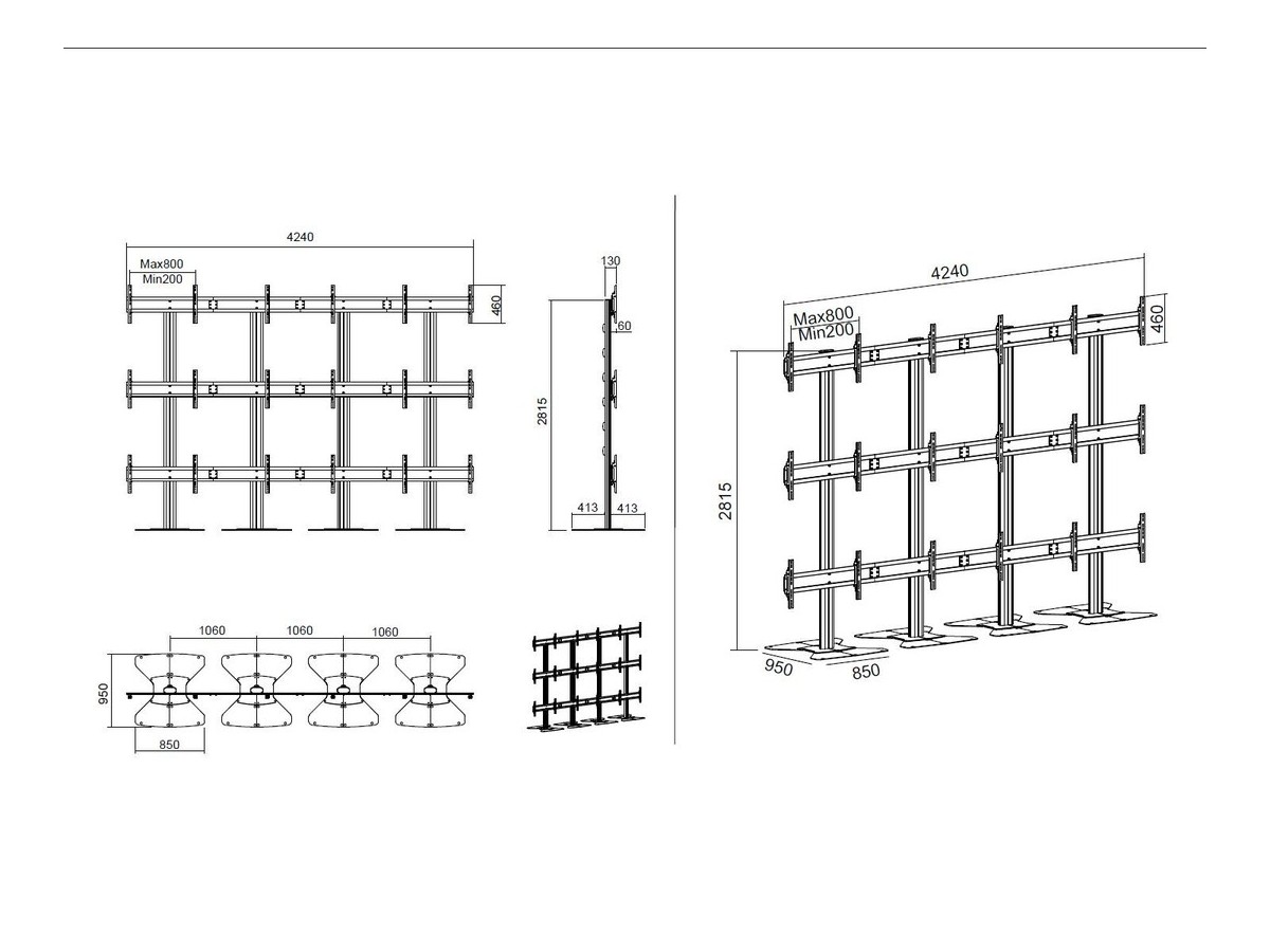Product code:M Public Video Wall Stand 9-Screens 65-75" Black - Stand for 9 LCD/LED displays - aluminum - black - screen size: 65"-75" - mounting interface: up to 800 x 400 mm - floor-standing