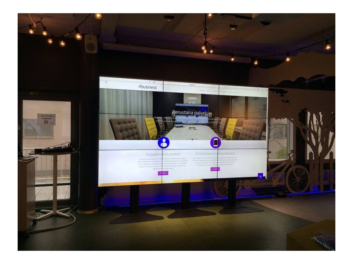 Based on 280 cm high pillar made out of durable aluminum, the possibilities for height adjustments are very good and it is possible to provide perfect viewing angle for both a sitting and a standing audience. There is a power rail built into each pillar, providing 220v power to the screens or peripheral. This makes installation and cable management an ease. This movable video wall solution creates a solution that can be used for presentations, trade shows, store or office entrances.