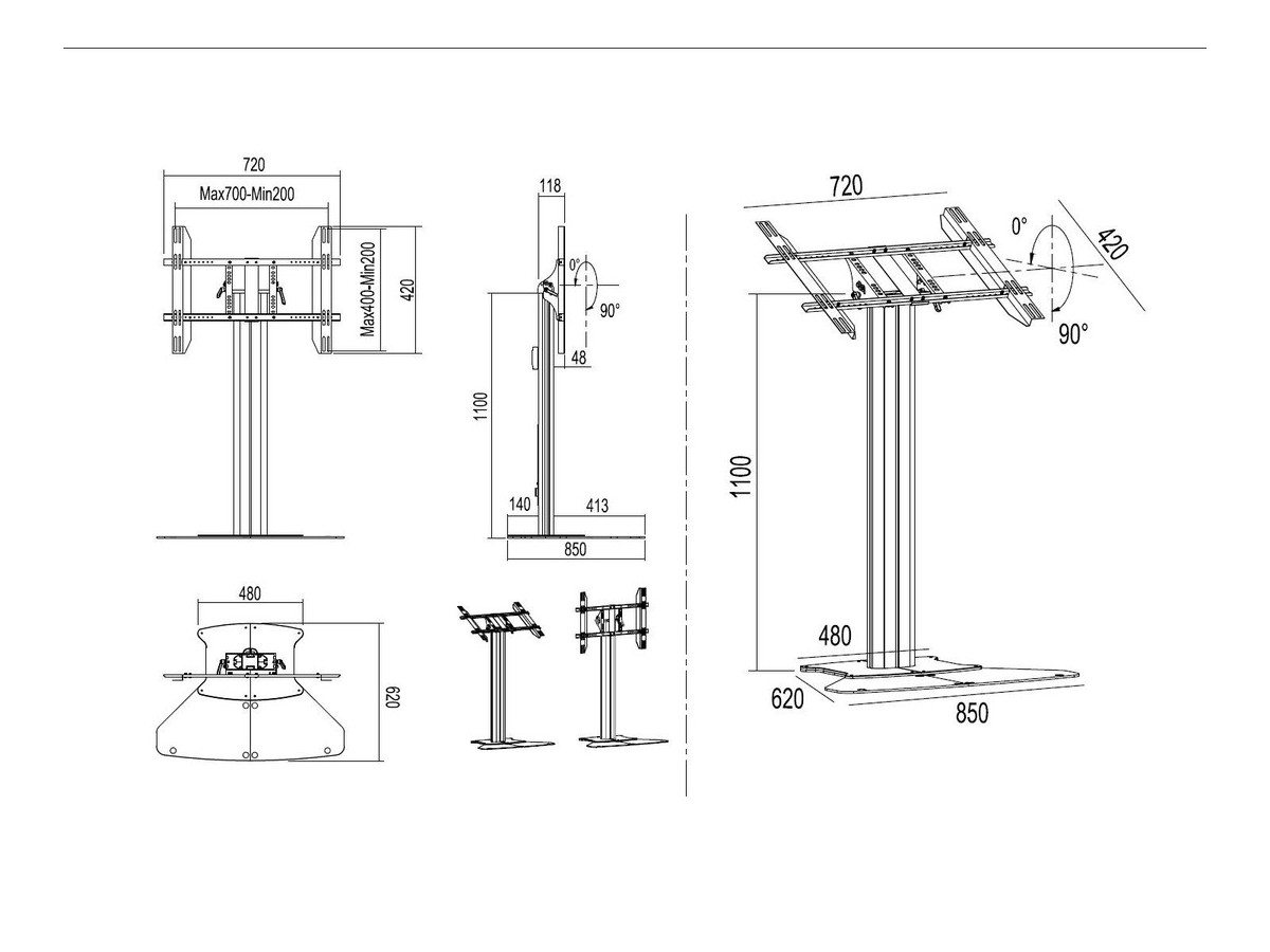 Product code:M Public Display Stand 110 HD Floorbase Single Silver - Stand for LCD display - aluminum - silver- screen size: 32" - 55" - mounting interface: 700 x 400 mm