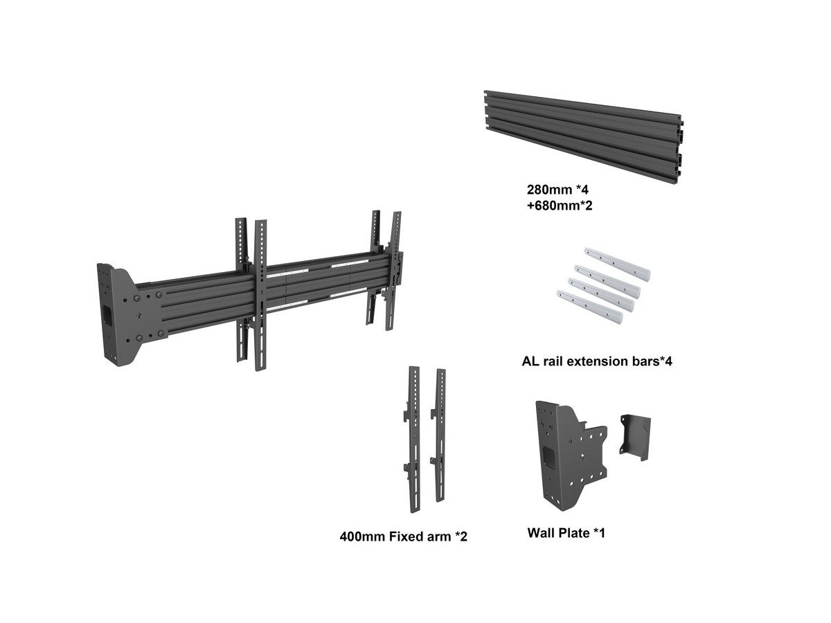 Product code:M Pro Series From Wall MBFW1UX2 - Wall mount for LCD display, steel, 2 screen, dual side, fixed, VESA Max 600x400 - screen size: 42-65” - black
