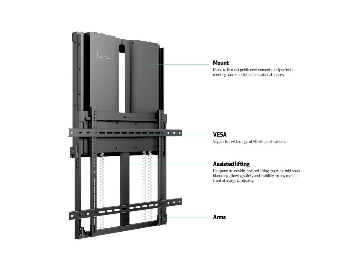 Product code:M Counterbalanced Wallmount HD 60-90kg - Wall mount for LCD / LED panel - black - screen size: 75"-90" - mounting interface: max 800 x 600 mm