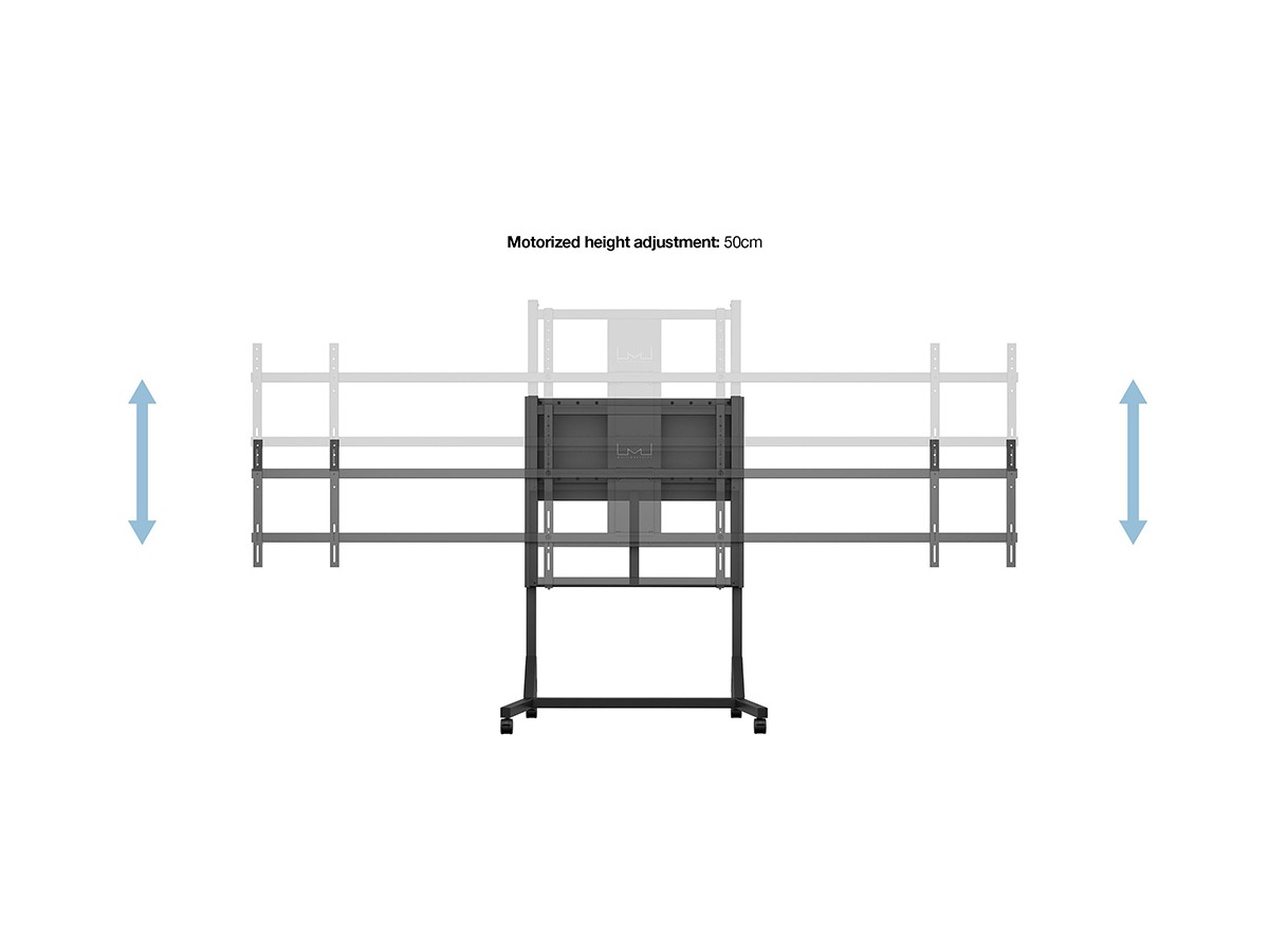 The motor-driven height adjustment allow you to move two displays up or down to a suitable height for any presentation, touchscreens or other meetingroom applications. The wide reach up or down makes it suitable for both a sitting or standing audience, making this product a perfect multifunctional solution for any need.