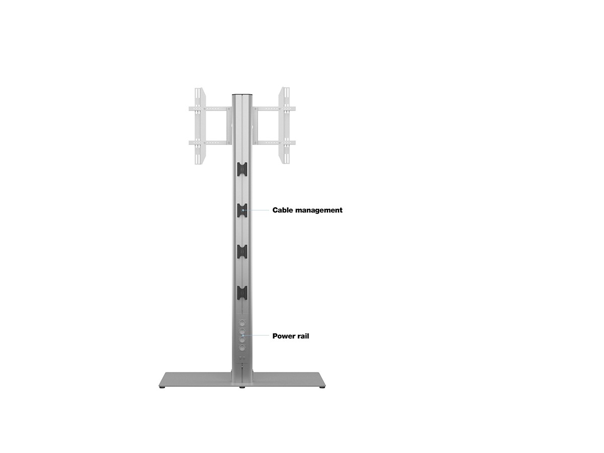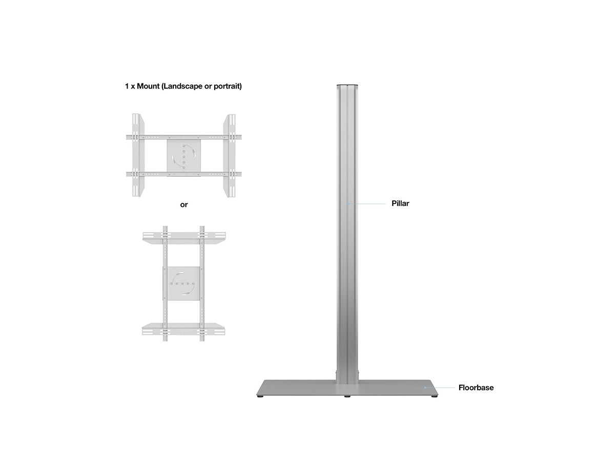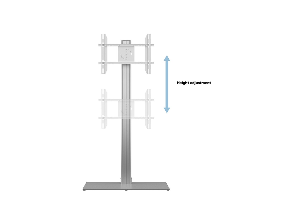 M Public Display Stand 210 HD Single Silver w. Floorbase is a ultraflexible and high level floor stand from Multibracket. With its screen rotation feature it’s both flexible and multifunctional.