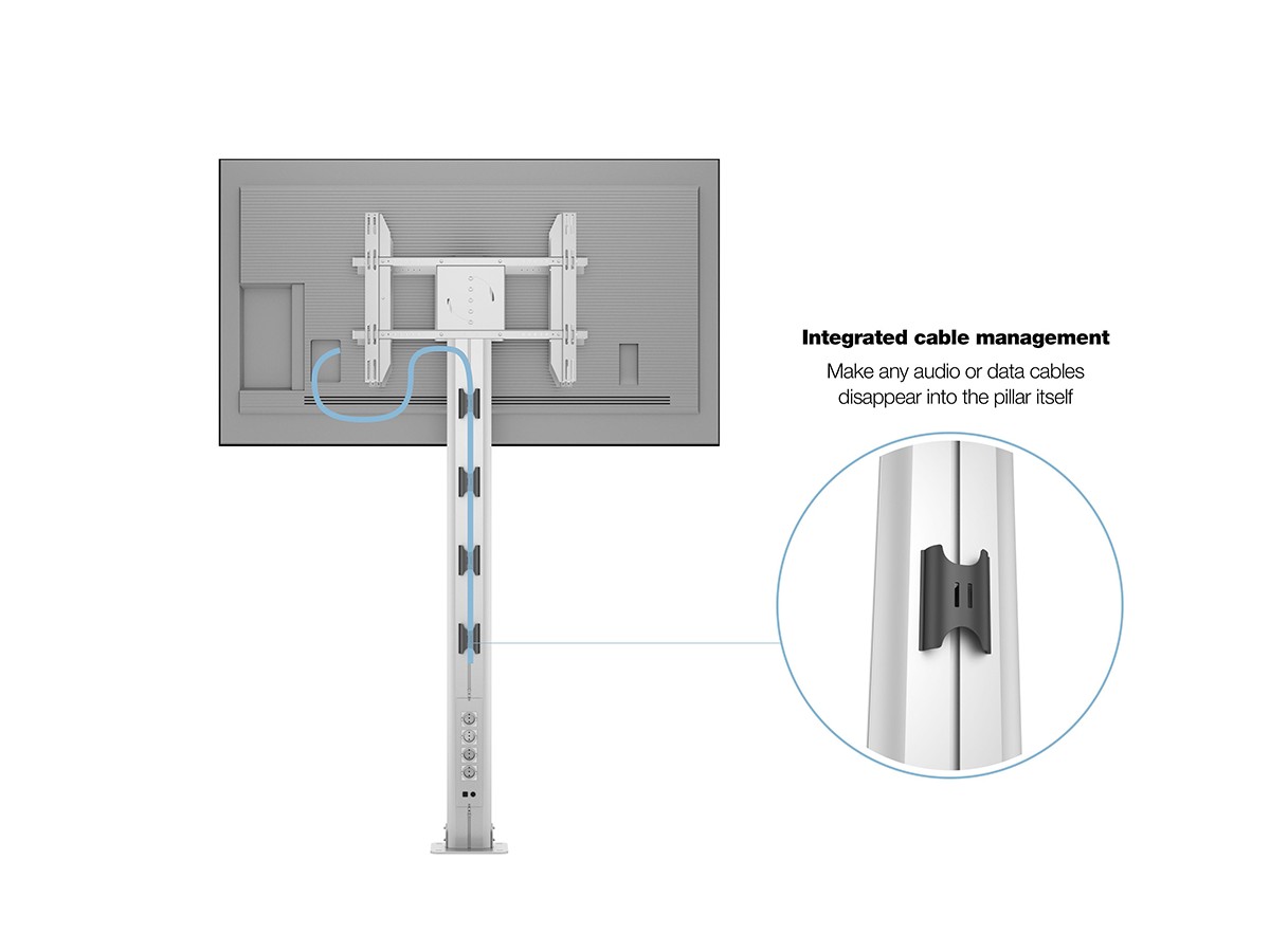 When developed much emphasize has been put into the stability and overall quality of the display stand, the floorbase plate is one solid peiece of metal creating good looks and great stability. This makes it a perfect partner for use in home environments as well as public environments such as conference rooms, class rooms or hospitals.