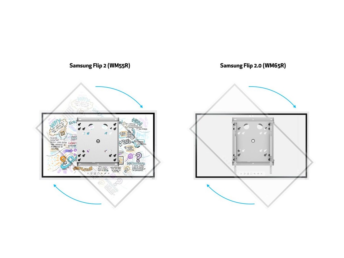 M Extension Adapter for Samsung Flip 2 - 65" (WM65R) allows you to enrich the functionality of the M VESA Wallmount Flip 200/300/400 fitting large size or non optimized screens with VESA hole pattern placed higher up than normal on the screens back.