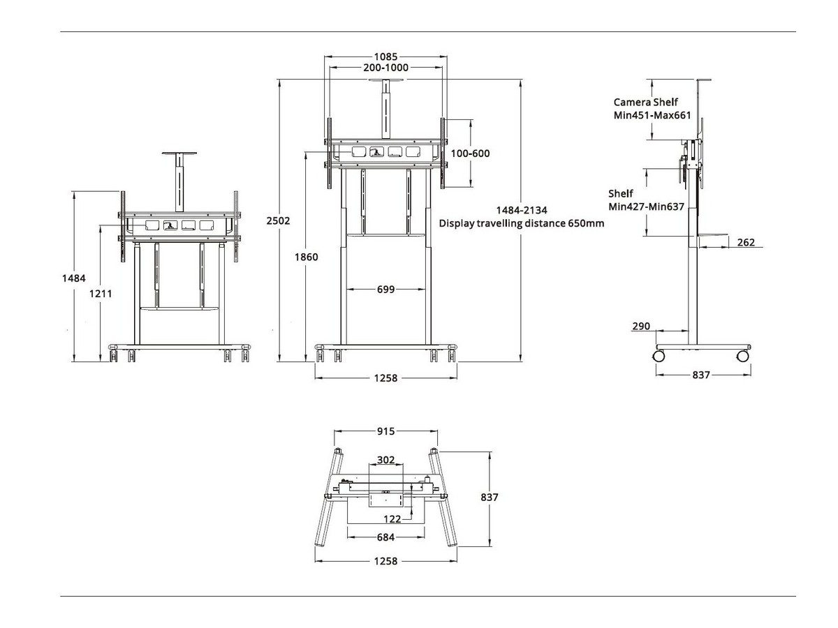 - Holds up to 150kg and VESA 1000x600