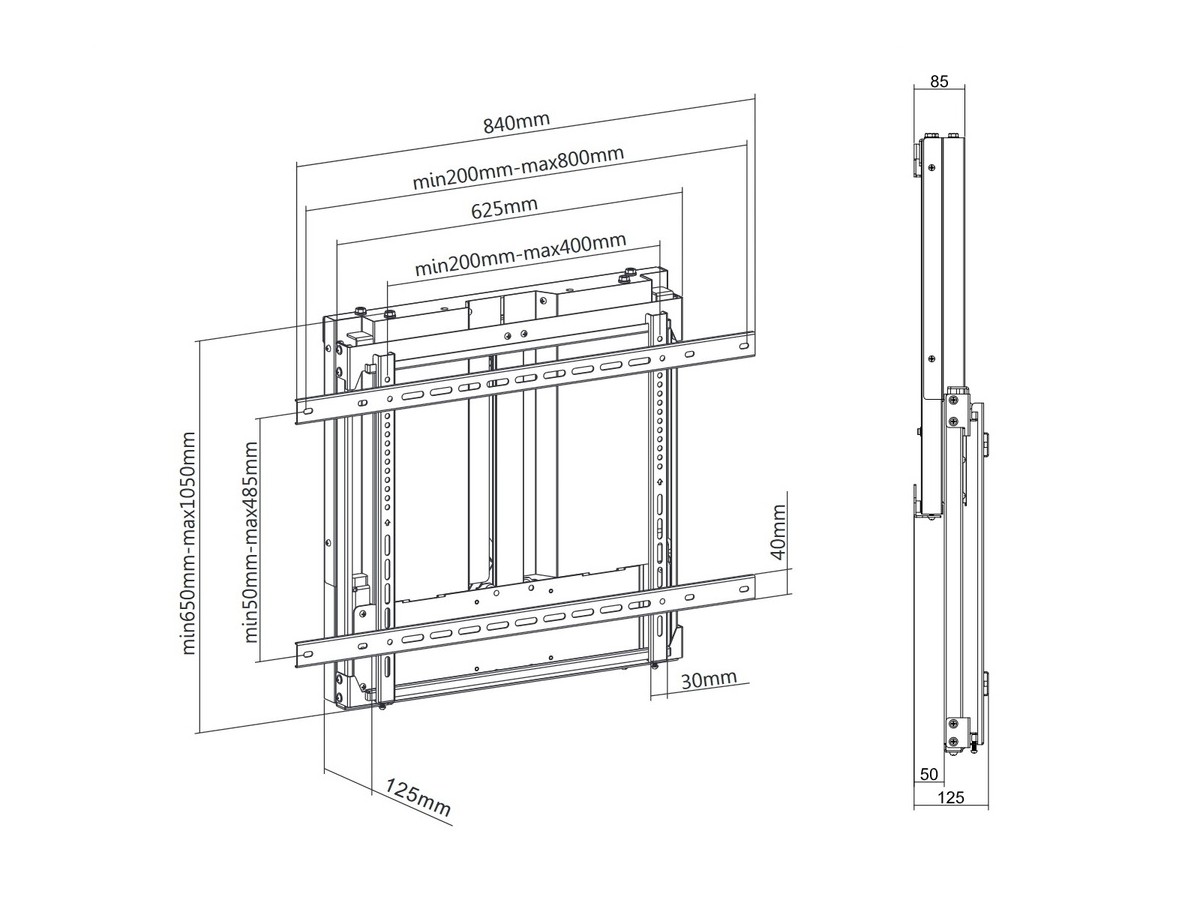 | Mounting holes (Max): | max: 800x400 mm |