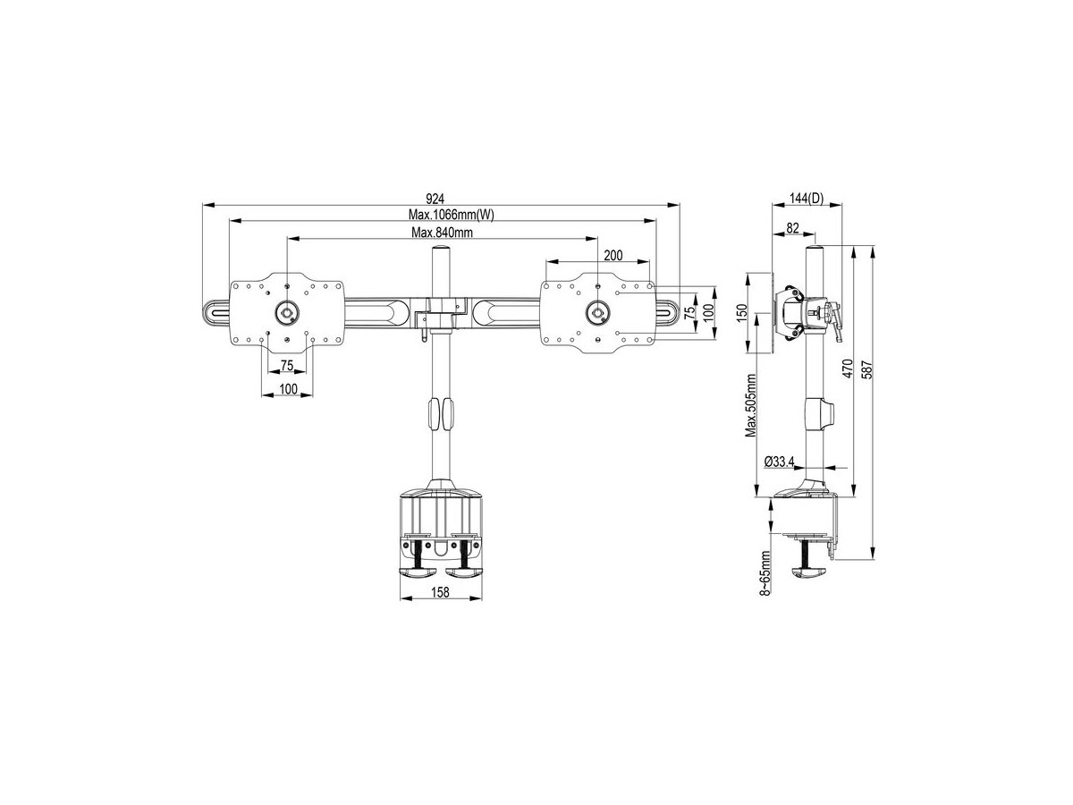 Product code:M VESA Desktopmount Dual Desk Clamp 24"-32" - Stand for 2 LCD displays - aluminum, steel - black - screen size: 24" - 32" - desktop stand
