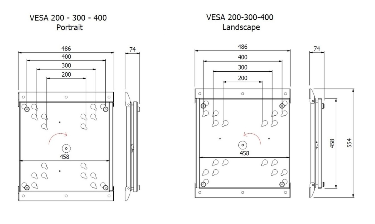 | Distance to wall: | VESA 100 / 200 / 300: 40mm + 74mm |