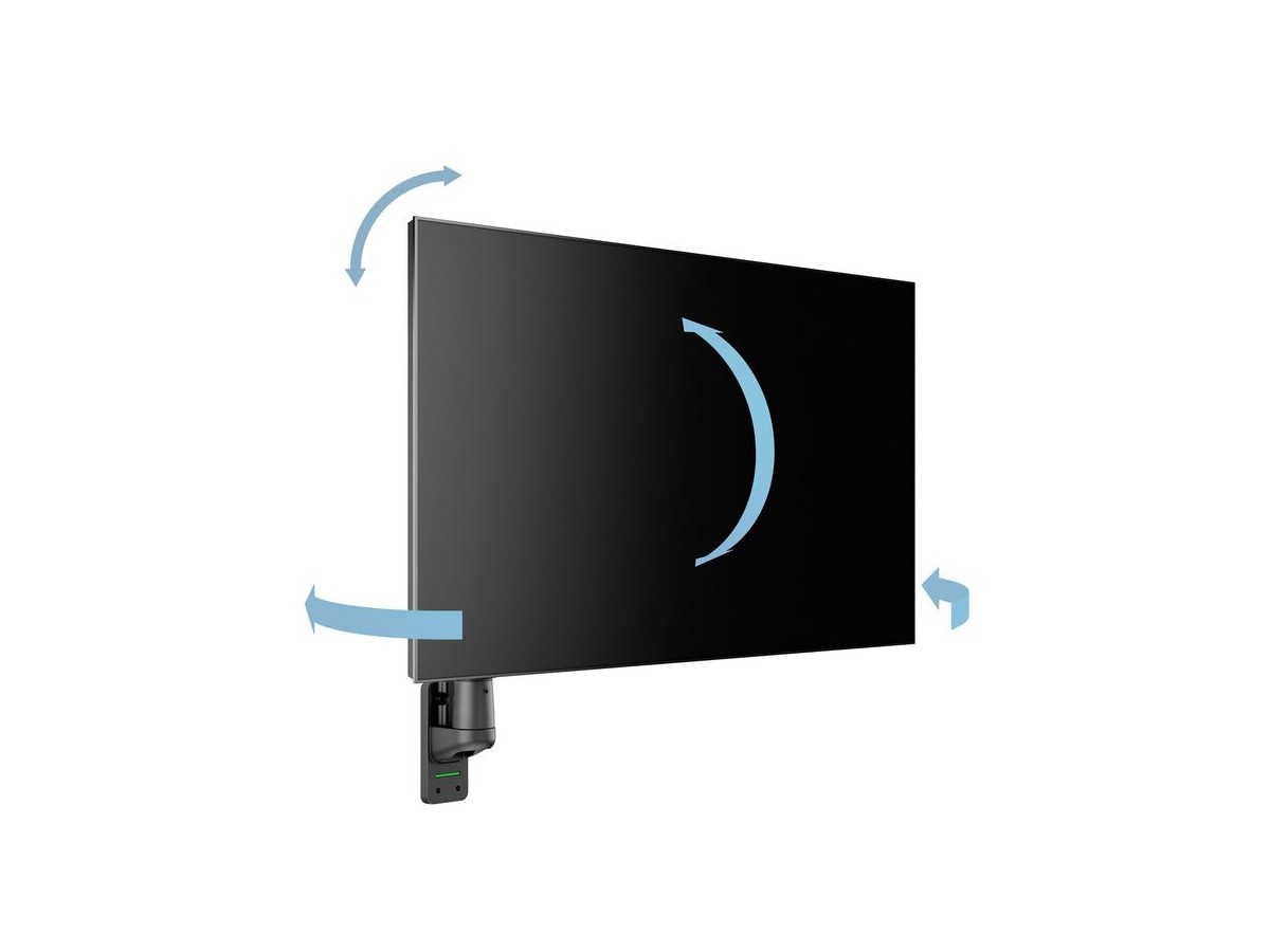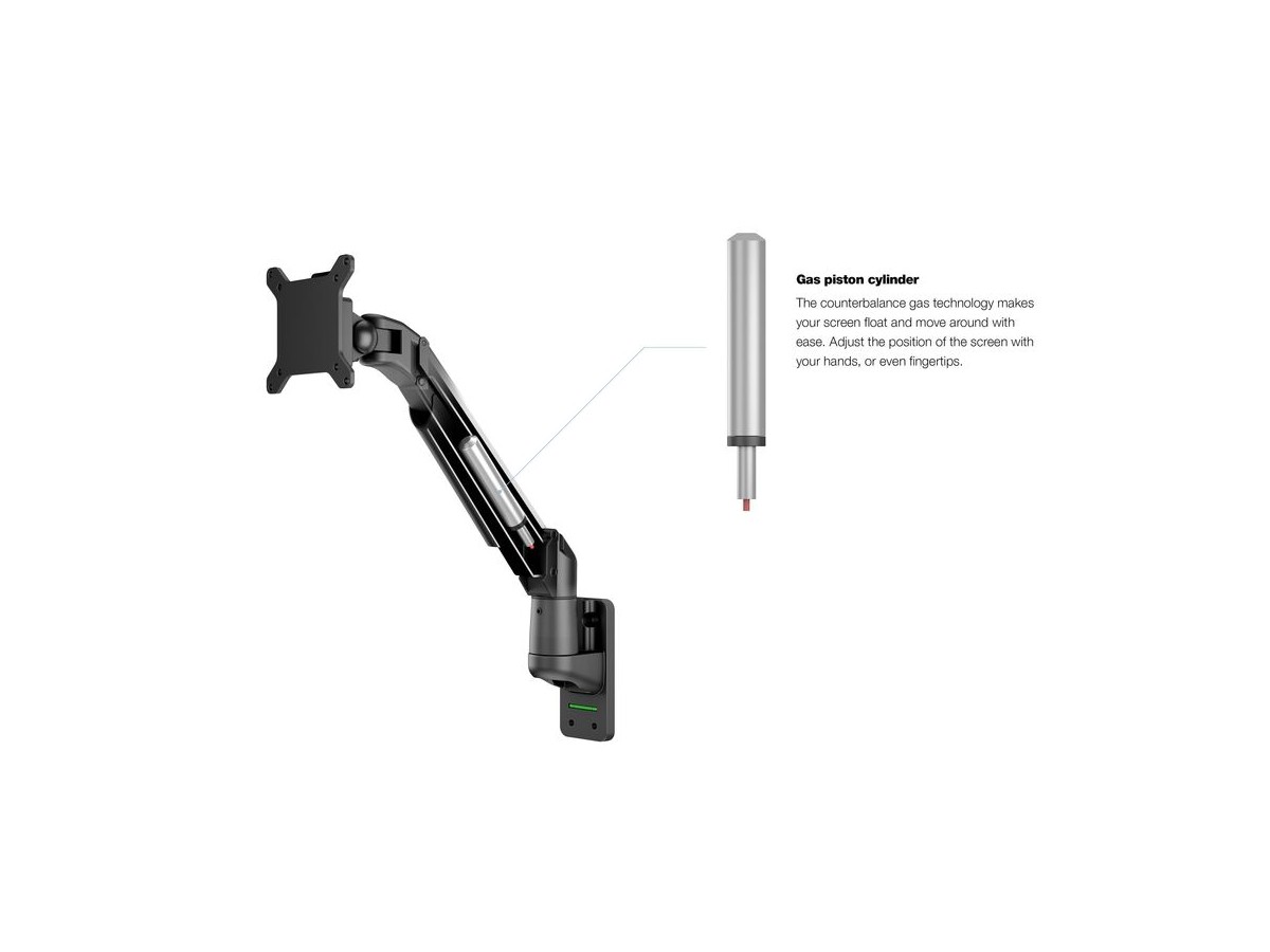 The M VESA Gas Lift Arm is made out of a durable aluminum construction and uses a gas driven suspension technique. This makes the screen "float" and it can then be moved with near zero effort. Sleek and streamlined, the M VESA Gas Lift Arm frees up space and allows positioning of your display for greater productivity. The unique counterbalance gas technology provides smooth adjustment in any direction. Easy move the screen from landscape to portrait position or move the screen close to the desk, high up, matching almost any wanted working position imaginable.